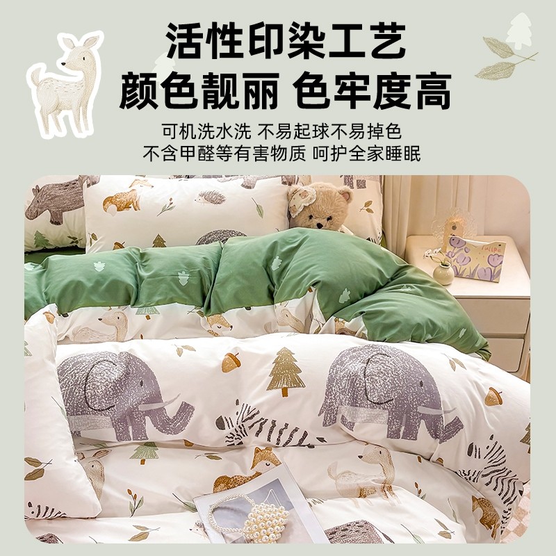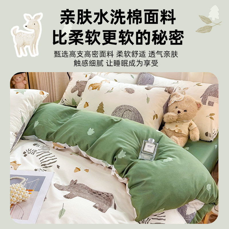 水洗棉床上卡通四件套夏季被套床单人宿舍三件套亲肤寝室被罩床单
