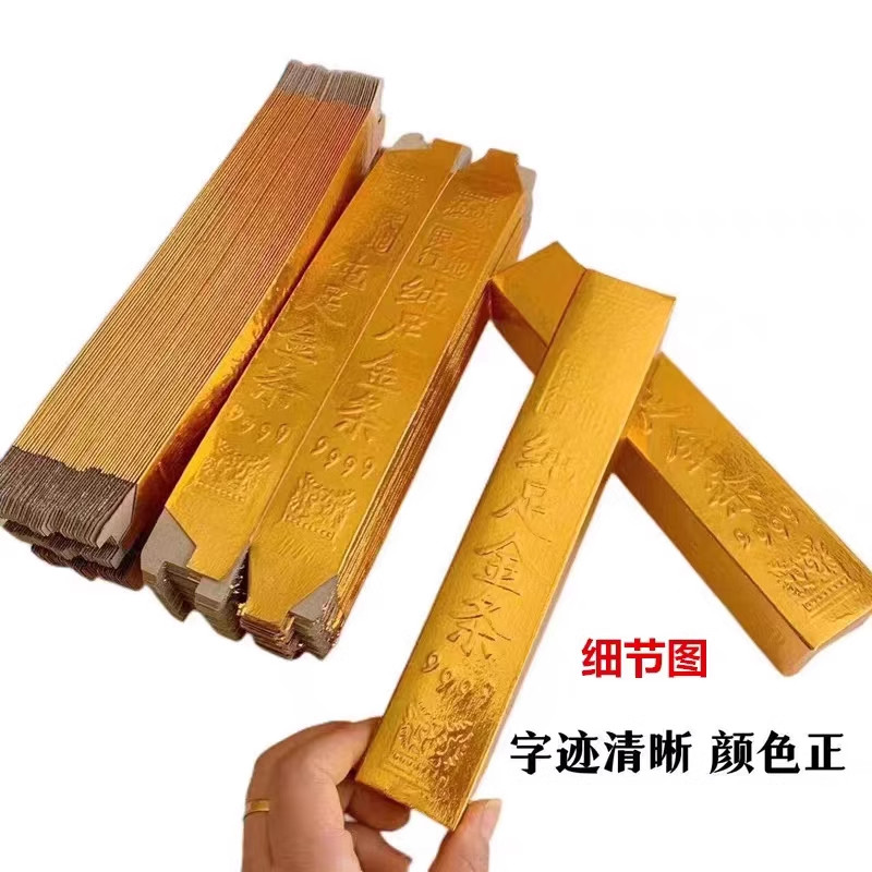半成品批发大号硬卡纸加厚小金条免粘仿真金条五福全套节日用品锡箔纸折纸整箱金砖高亮