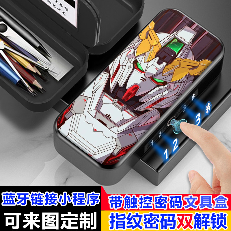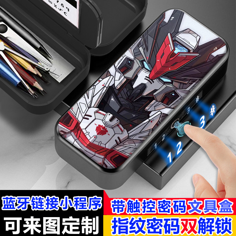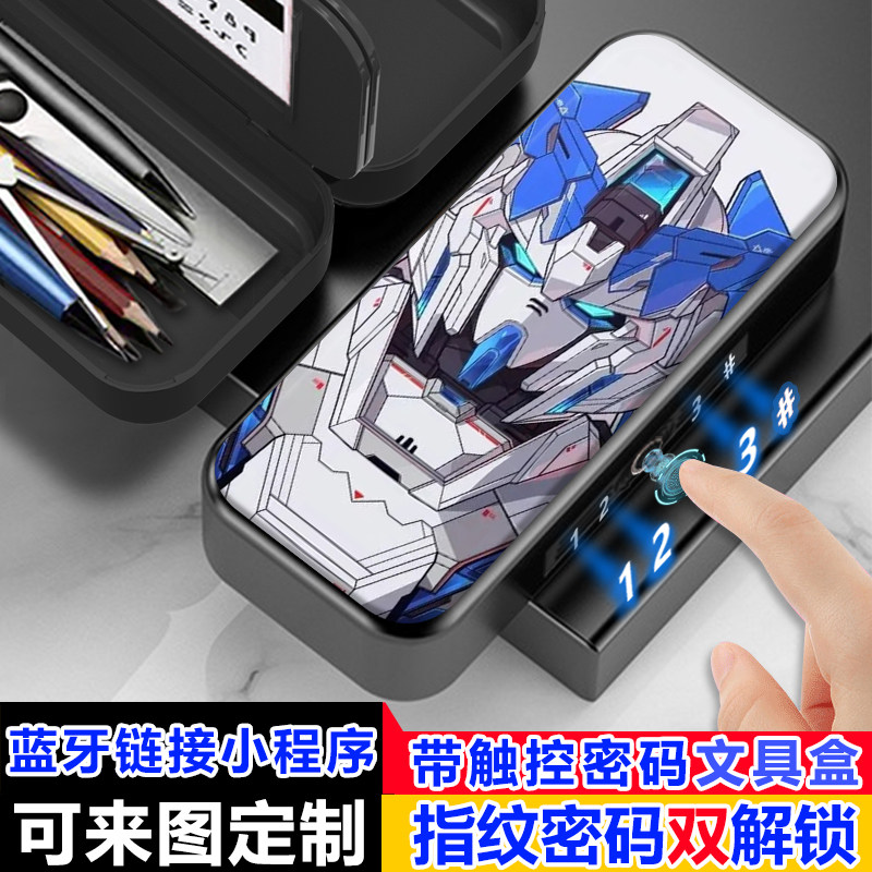 指纹密码双解锁机动战士高达文具盒新款小学生男多功能密码黑科技