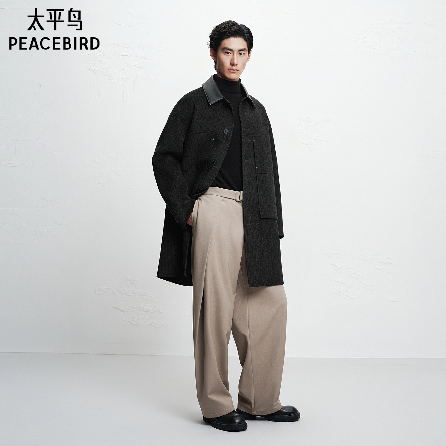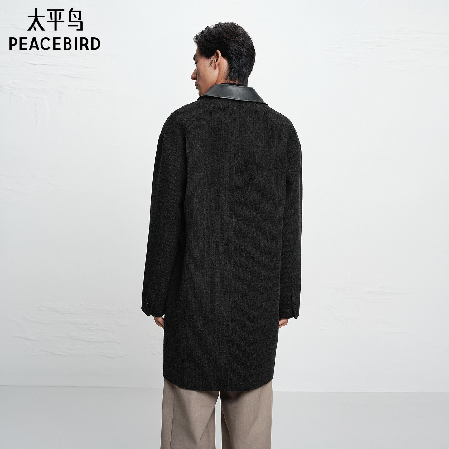 【商场同款】太平鸟男装休闲毛呢大衣巴恩风PU领大衣 B1AAF4414@