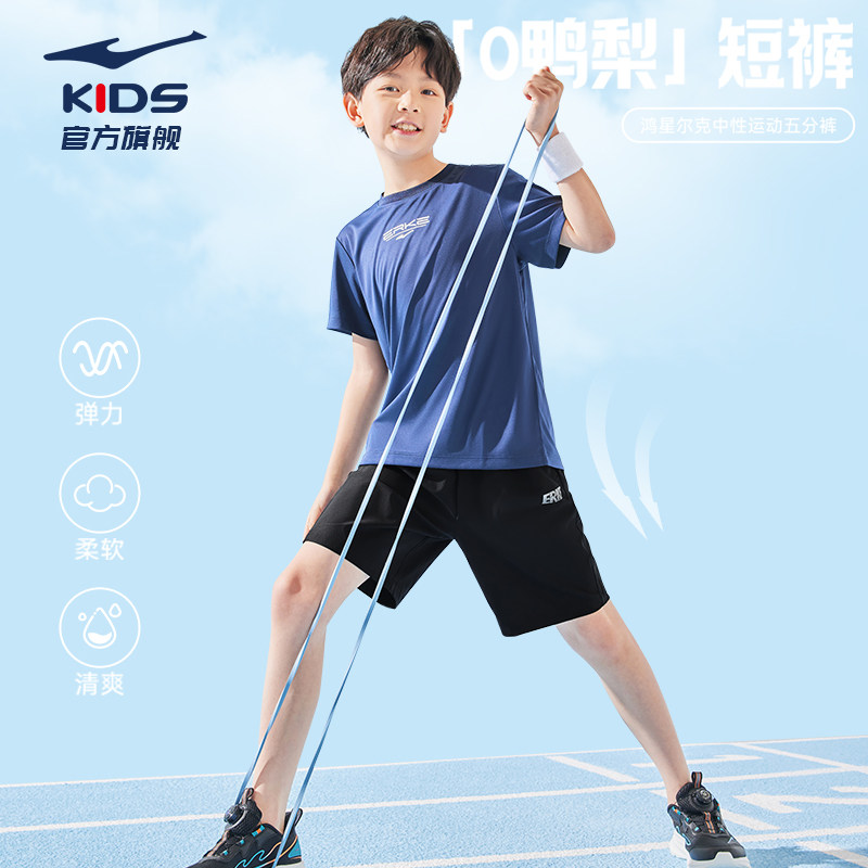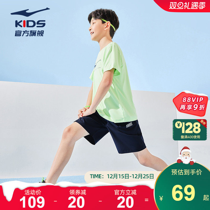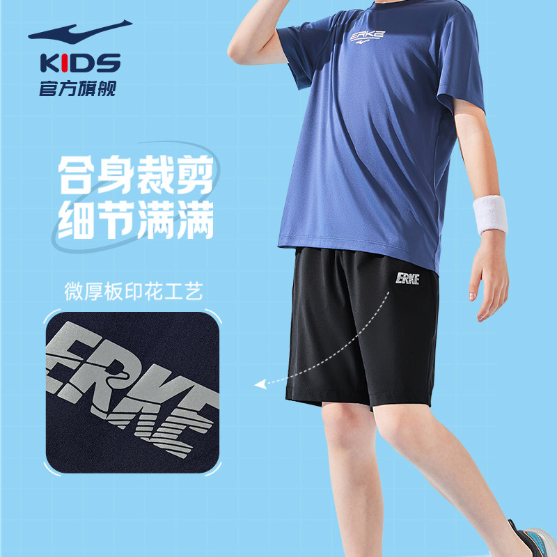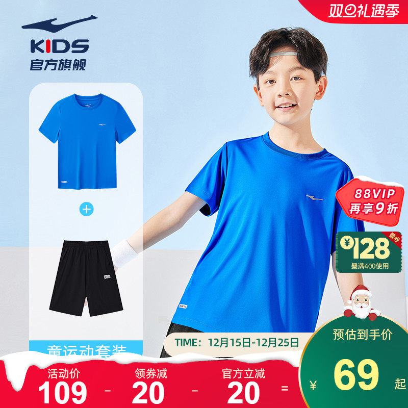 鸿星尔克童装男童短袖夏季运动套装吸汗透气速干短袖短裤两件套