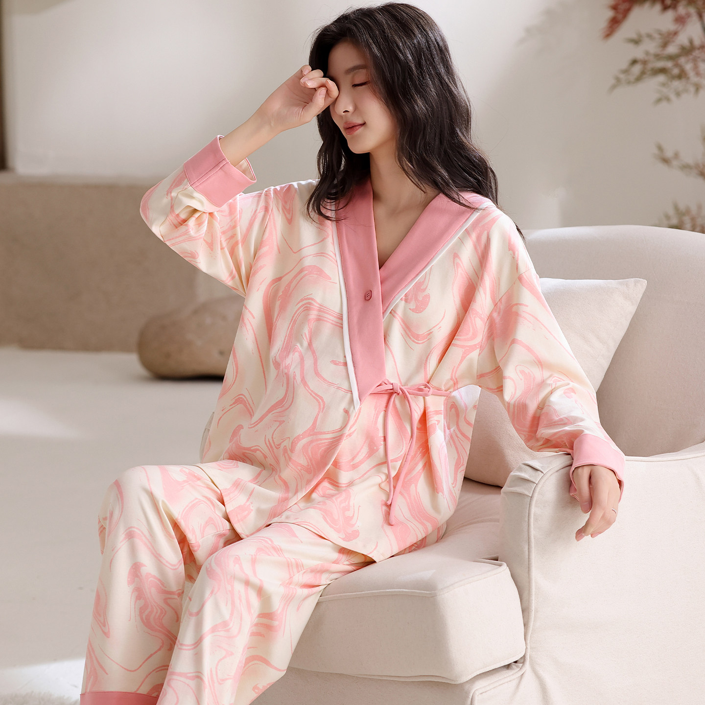 月子服纯春秋产后孕妇睡衣棉产妇待产喂奶哺乳12月份秋冬季家居服