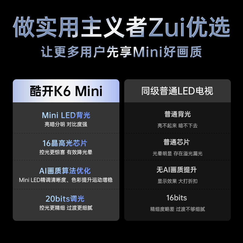 20%补贴创维酷开K6Mini 75英寸高刷大内存护眼高清智能家用电视机