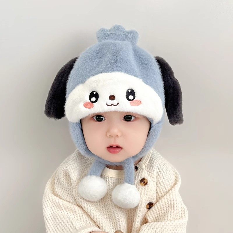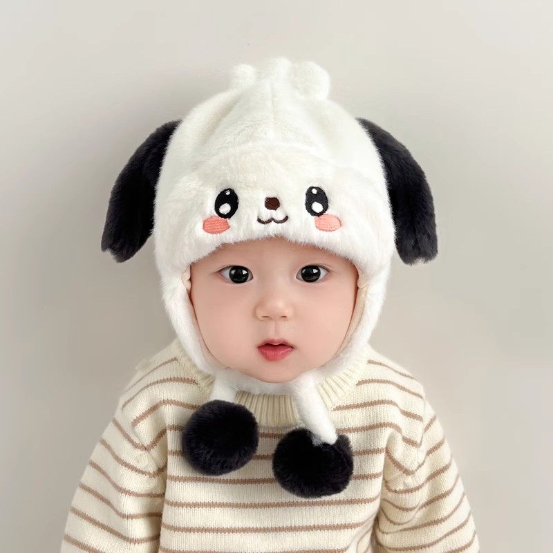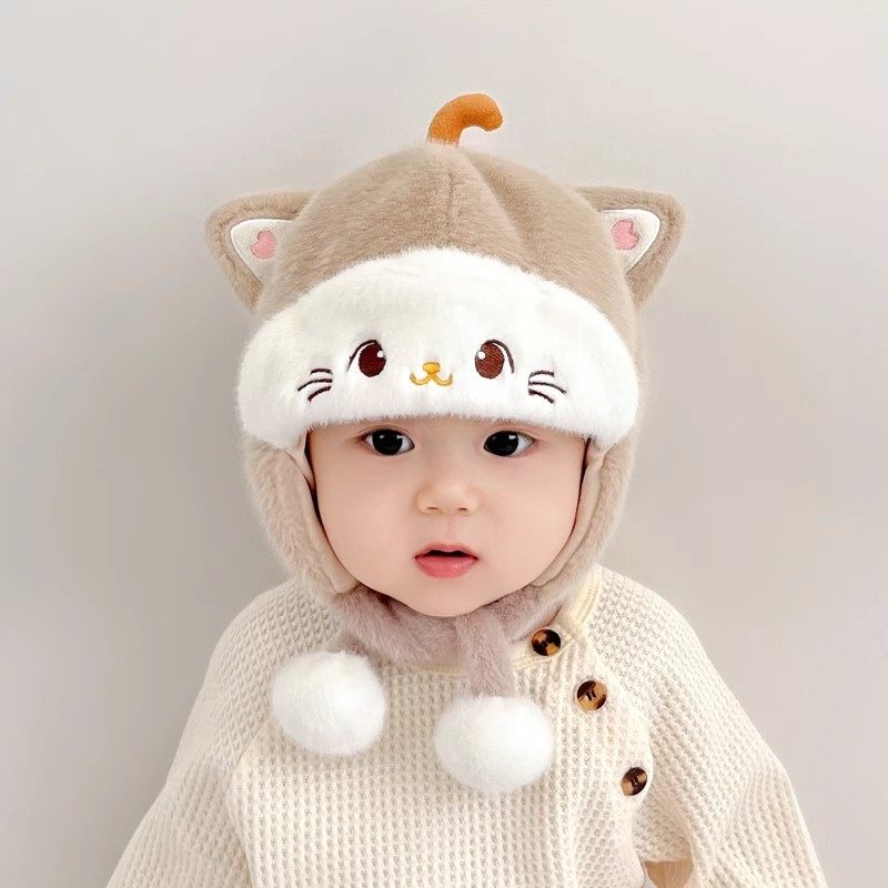尼多熊婴儿帽子秋围脖一体宝宝毛绒帽防风护耳帽冬季保暖婴幼儿帽