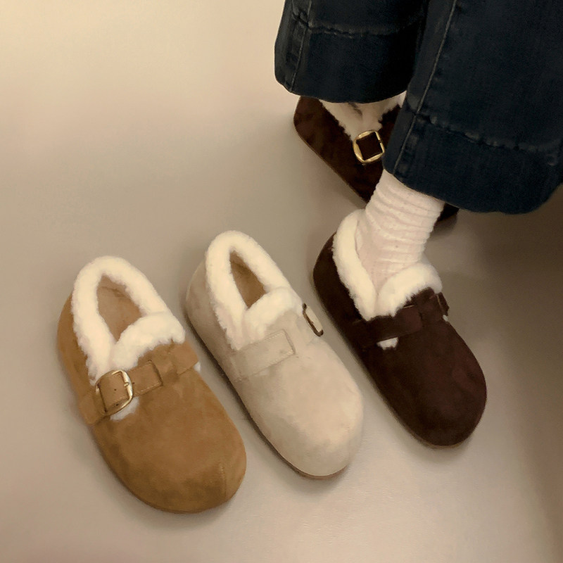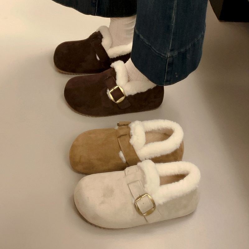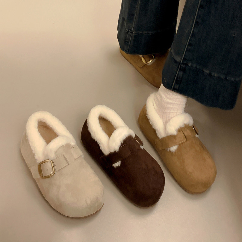 低帮厚底雪地靴女2025新款冬季懒人一脚蹬毛毛棉鞋加绒加厚女鞋子