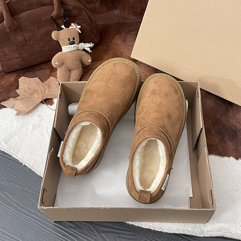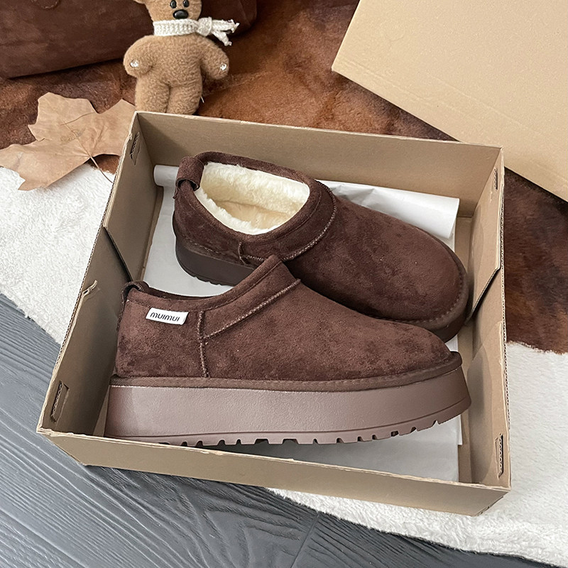低帮厚底雪地靴女2025新款冬季懒人一脚蹬毛毛棉鞋加绒加厚女鞋子