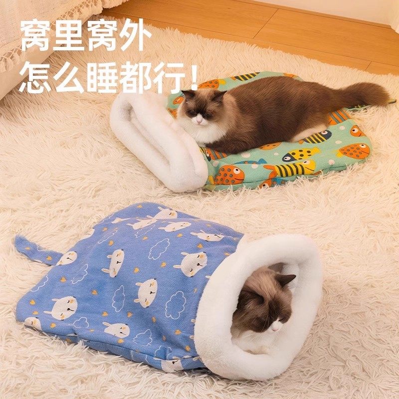 冬季保暖封闭式猫床狗窝四季通用猫咪睡袋宠物窝可拆洗半封闭过冬