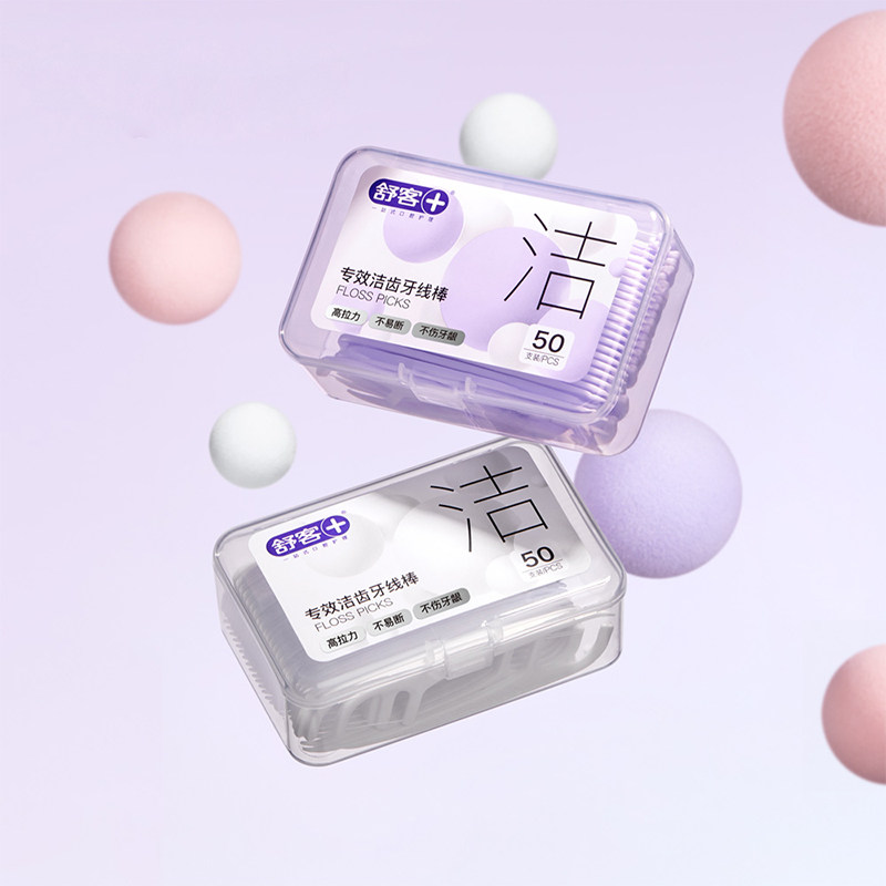 舒客专效洁齿牙线棒正品牙线便携牙线盒50支剔牙牙签独立包装普通