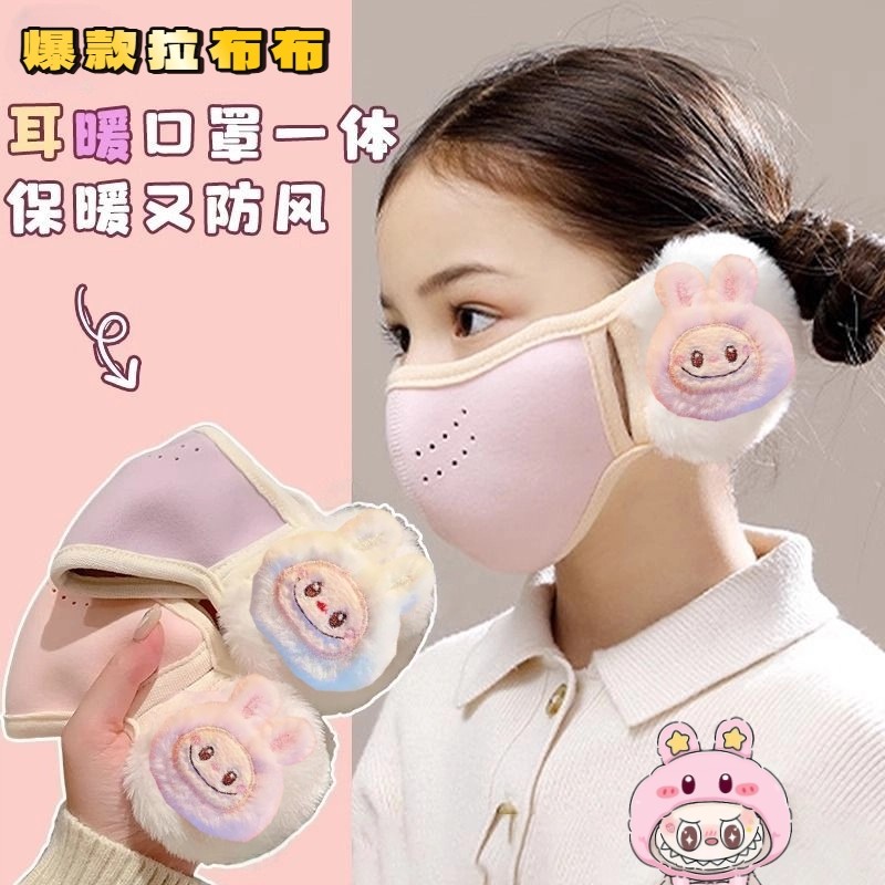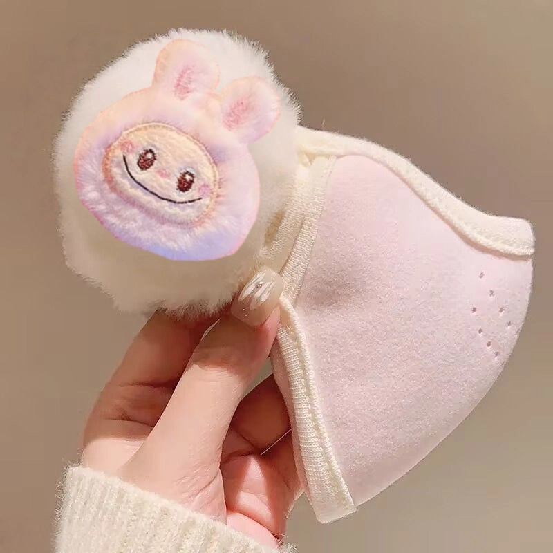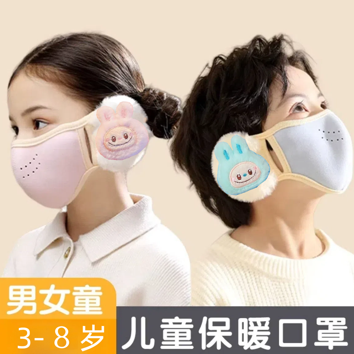 儿童保暖口罩耳罩一体秋冬季男女童布布加厚毛绒面罩防冻防寒风