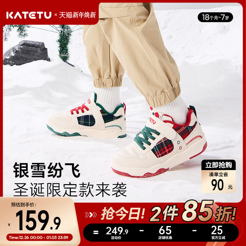 卡特兔儿童运动板鞋2025秋冬新款幼儿园小白鞋加绒棉鞋