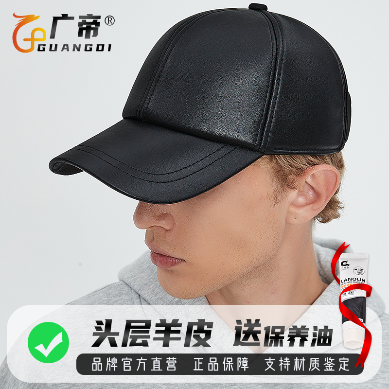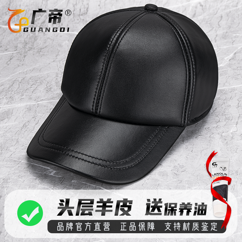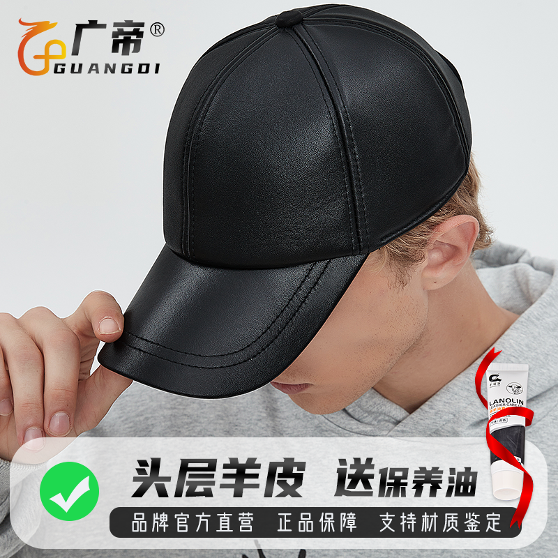 广帝 羊皮 春秋冬季真皮帽子男冬天薄款户外防寒保暖棒球帽鸭舌帽