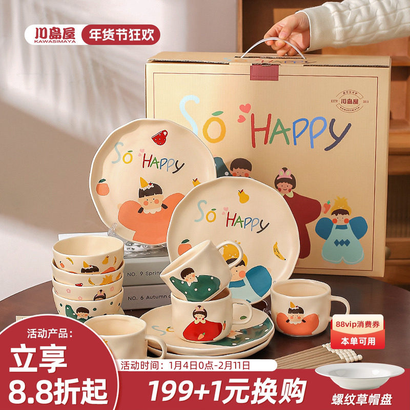 川岛屋一家四口餐具碗碟套装家用乔迁新居礼品结婚新婚生日礼物女
