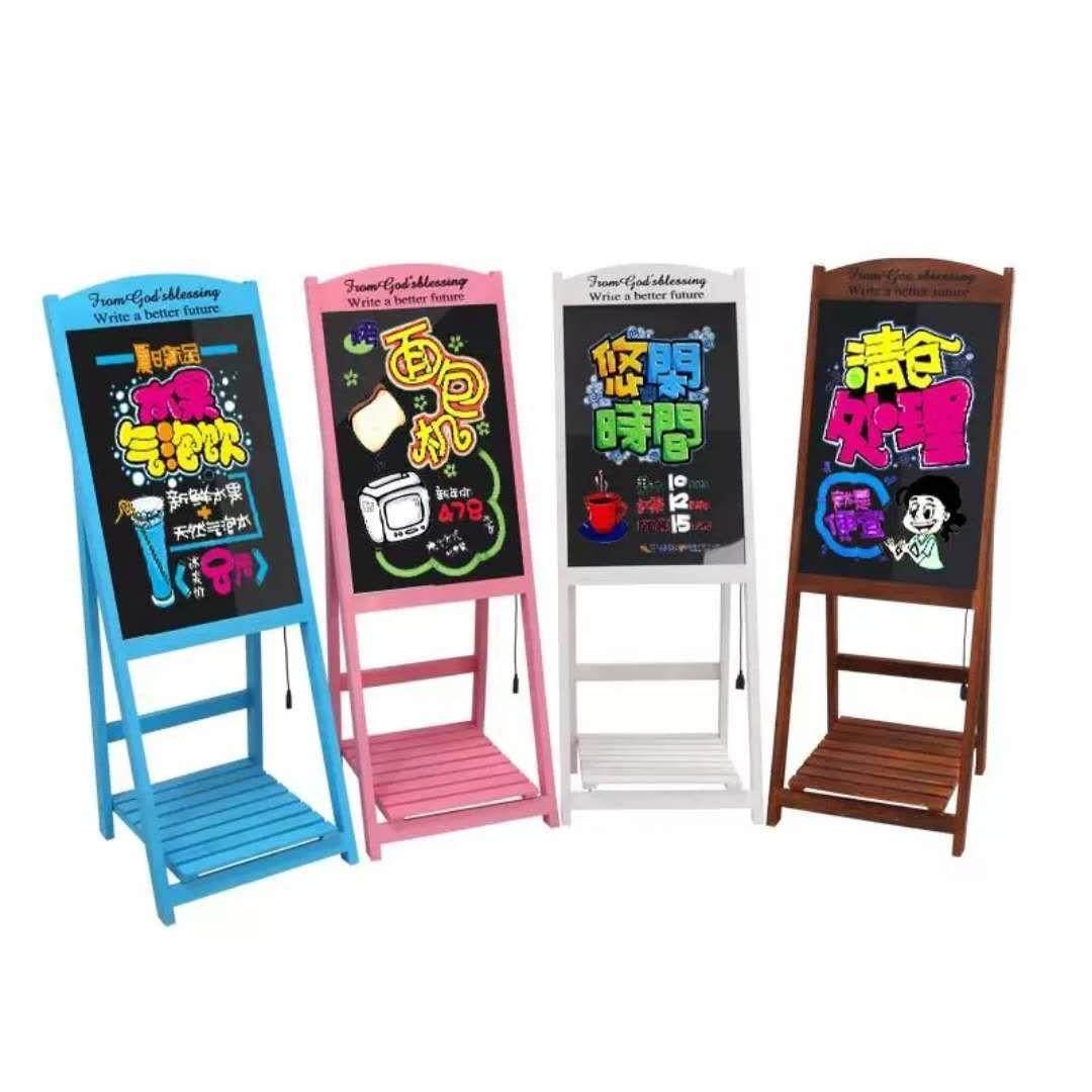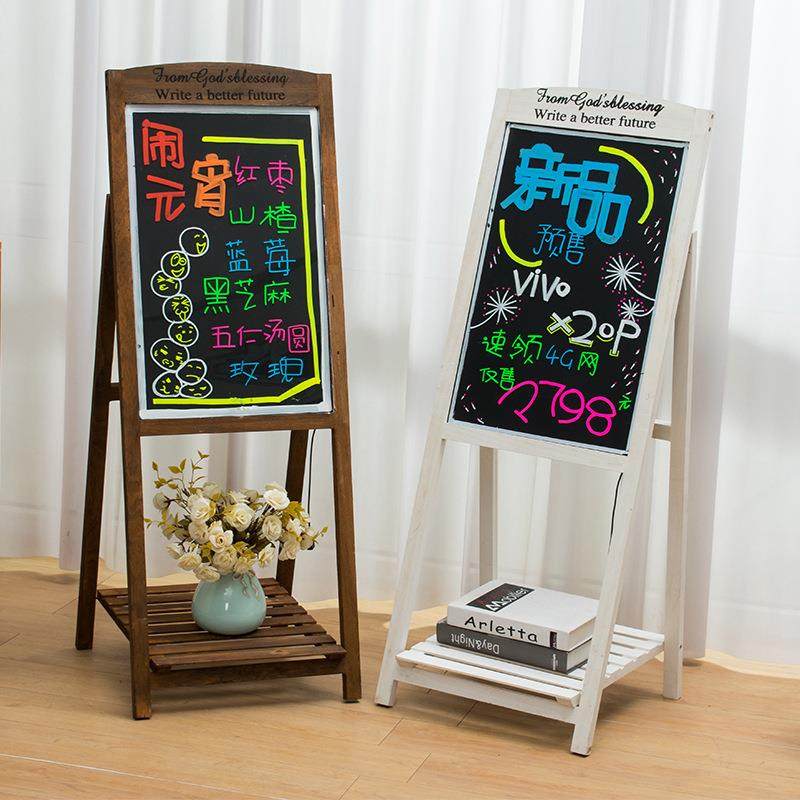 实木小黑板LED荧光板花架黑板儿童画板LED黑板立式画板广告版