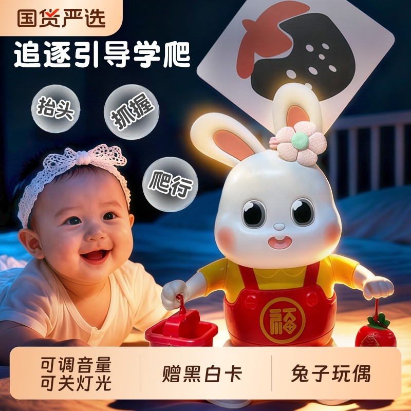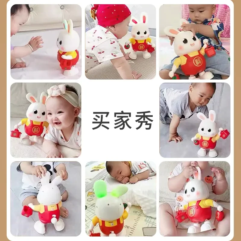 会跳舞的电动小福兔子婴儿玩具儿童抬头练习训练玩偶公仔宝宝新生