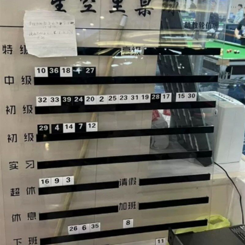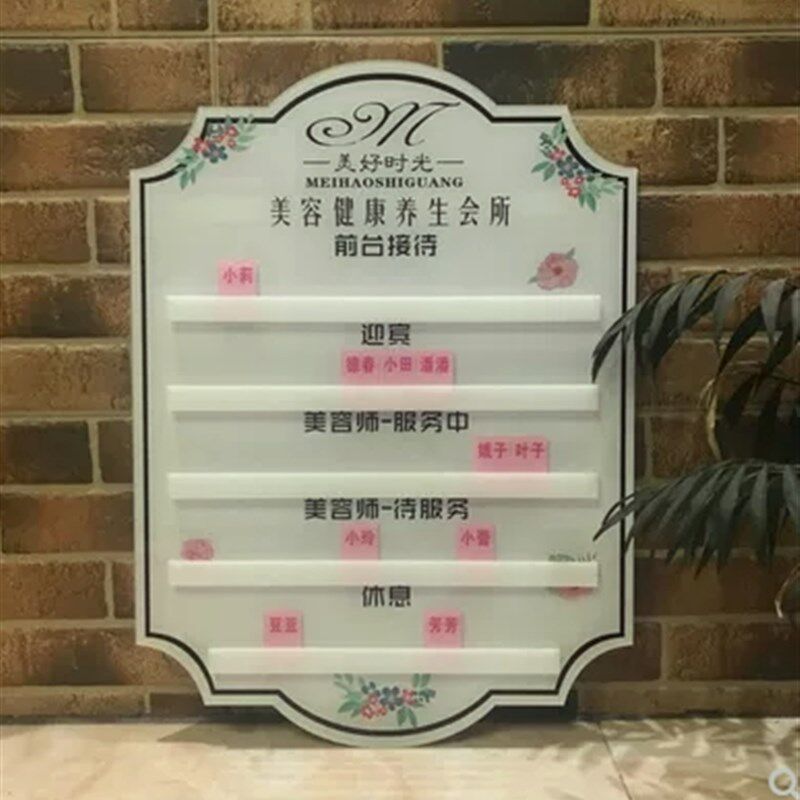 台球室助教排钟表美发店流水牌美甲金店工作牌轮R牌美容店工号牌