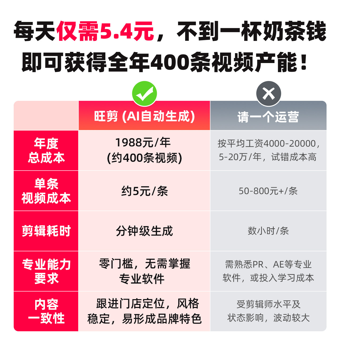 旺剪秦丝服装专研AI视频生产器1键出片自媒体抖音短视频剪辑软件