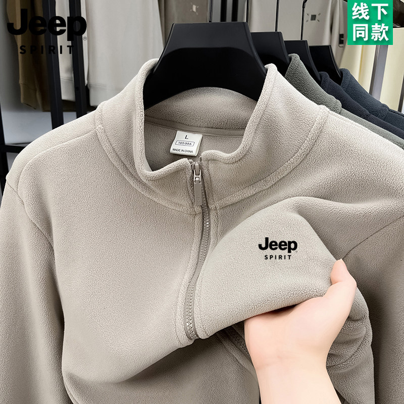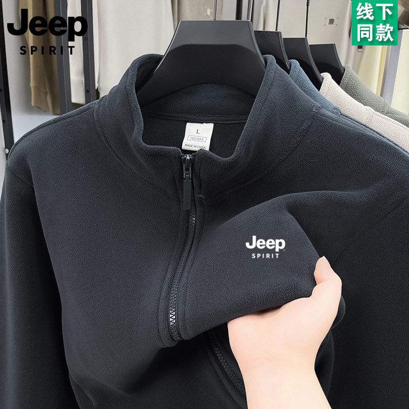 JEEP吉普户外奥粒抓绒衣拉链杉加绒立领秋冬季男士外套冲锋衣夹克
