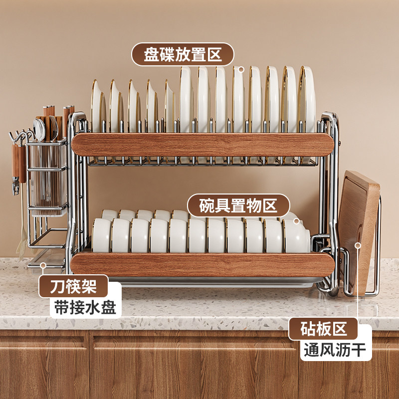不锈钢碗碟收纳置物架厨房2026新款多功能台面放碗筷盘沥水碗柜