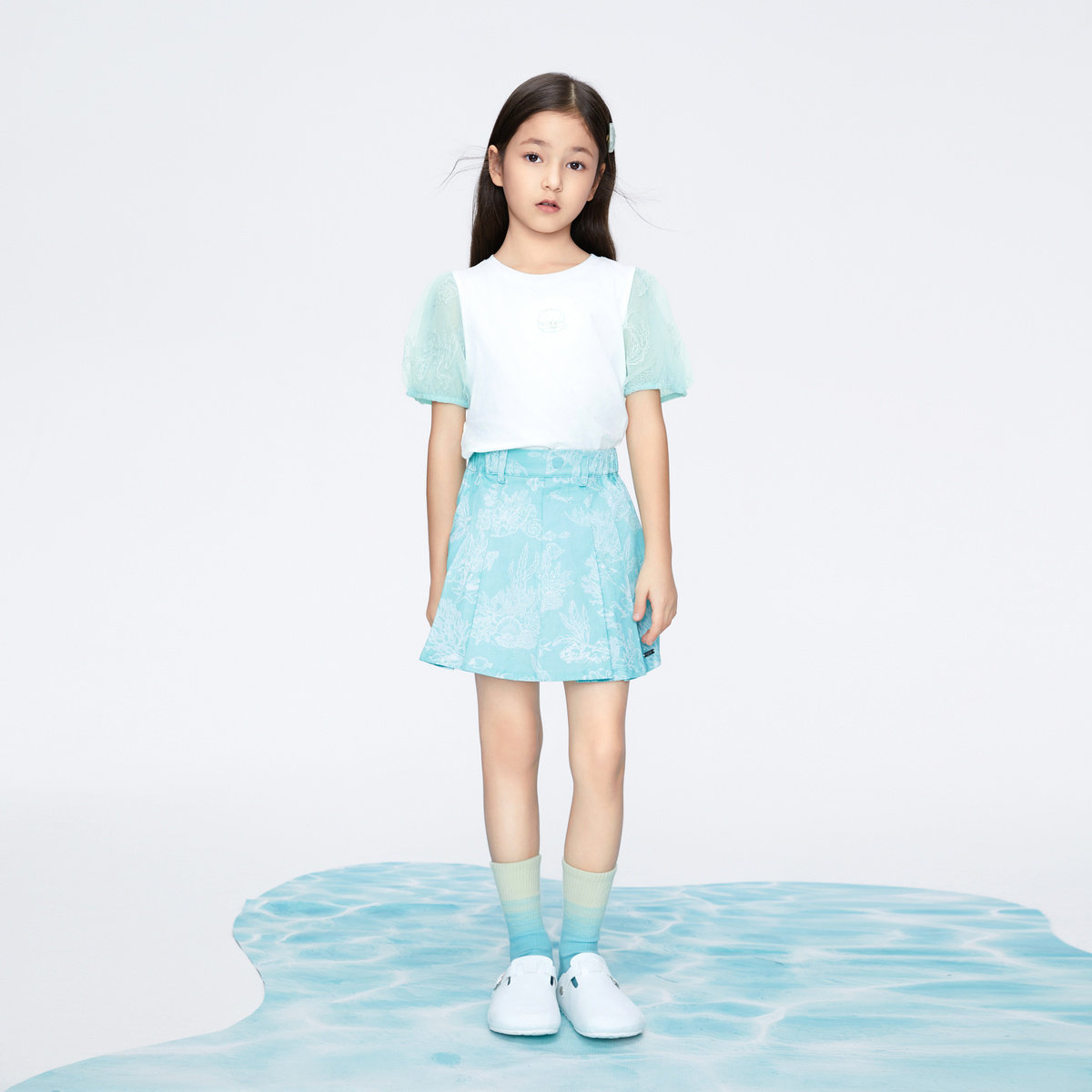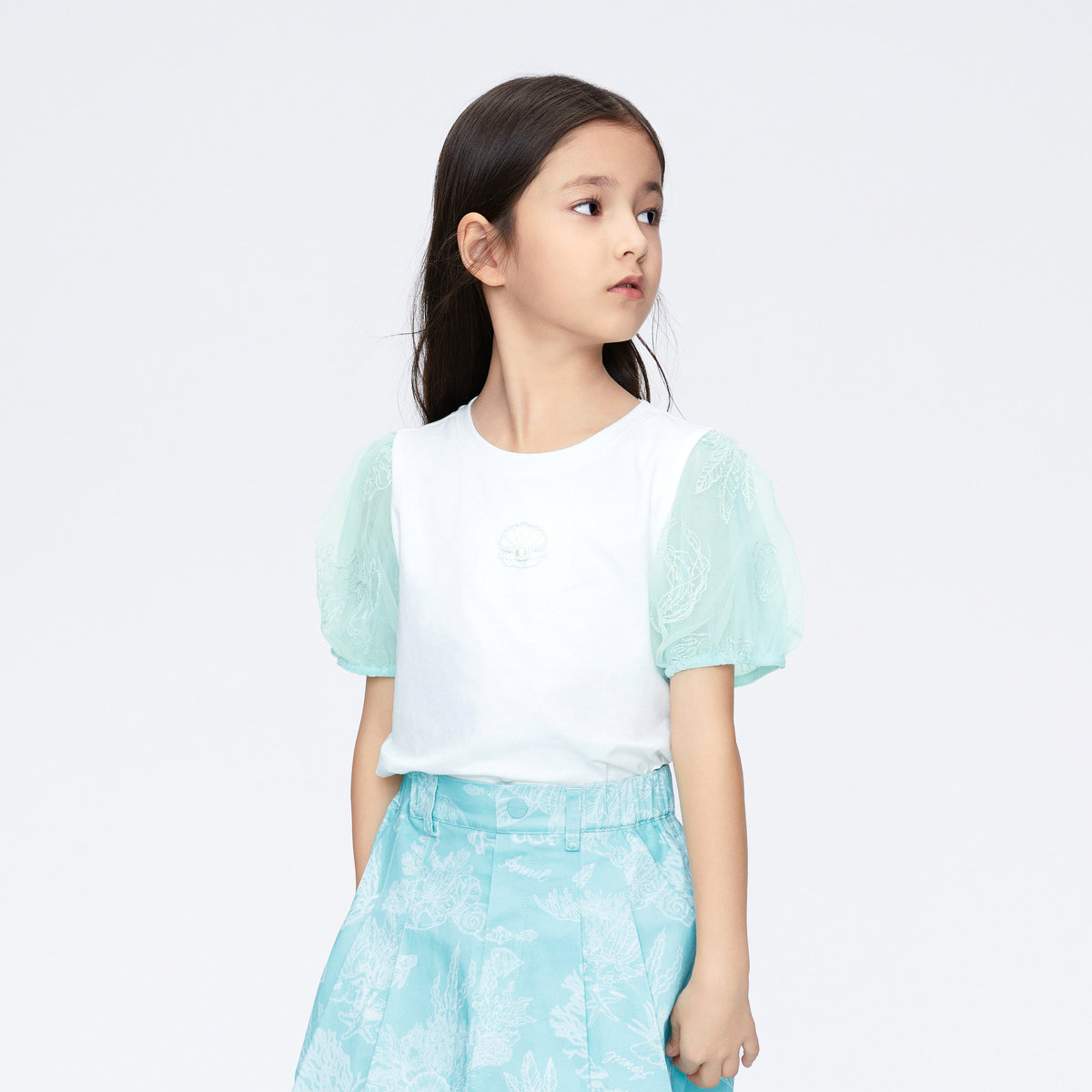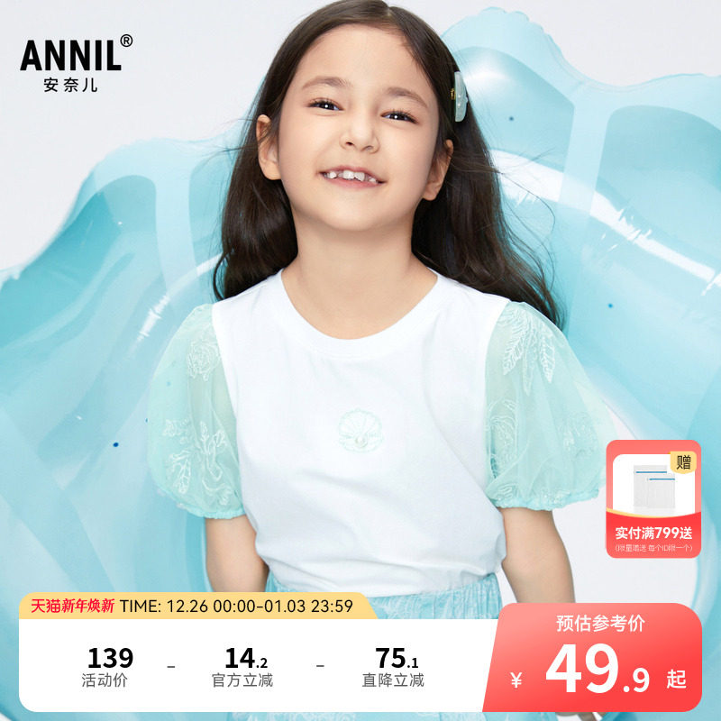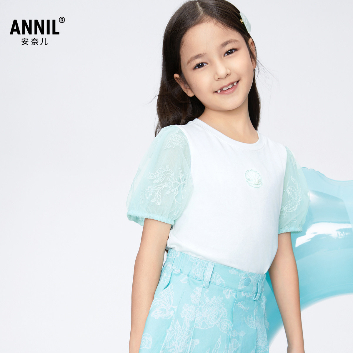 【商场同款】安奈儿女童圆领清凉短袖T恤夏新款甜美拼色AG421793