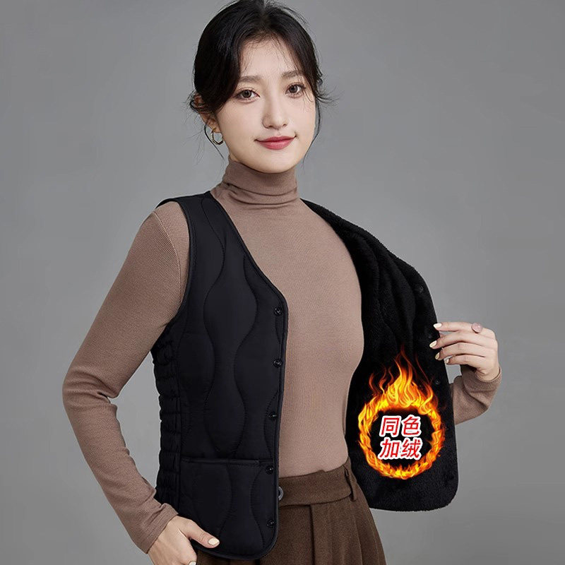 保暖背心女内穿毛圈薄绒加厚秋衣美体紧身防寒打底无袖内衣女上衣