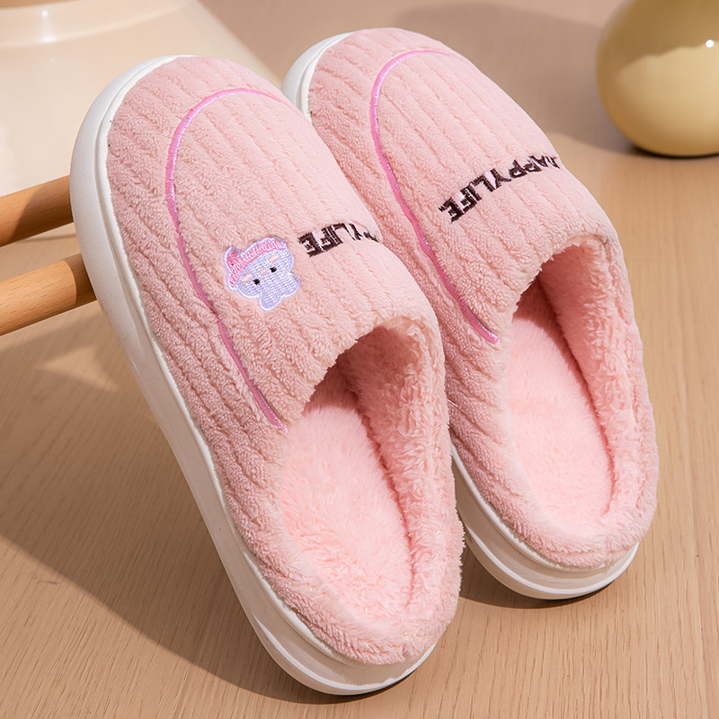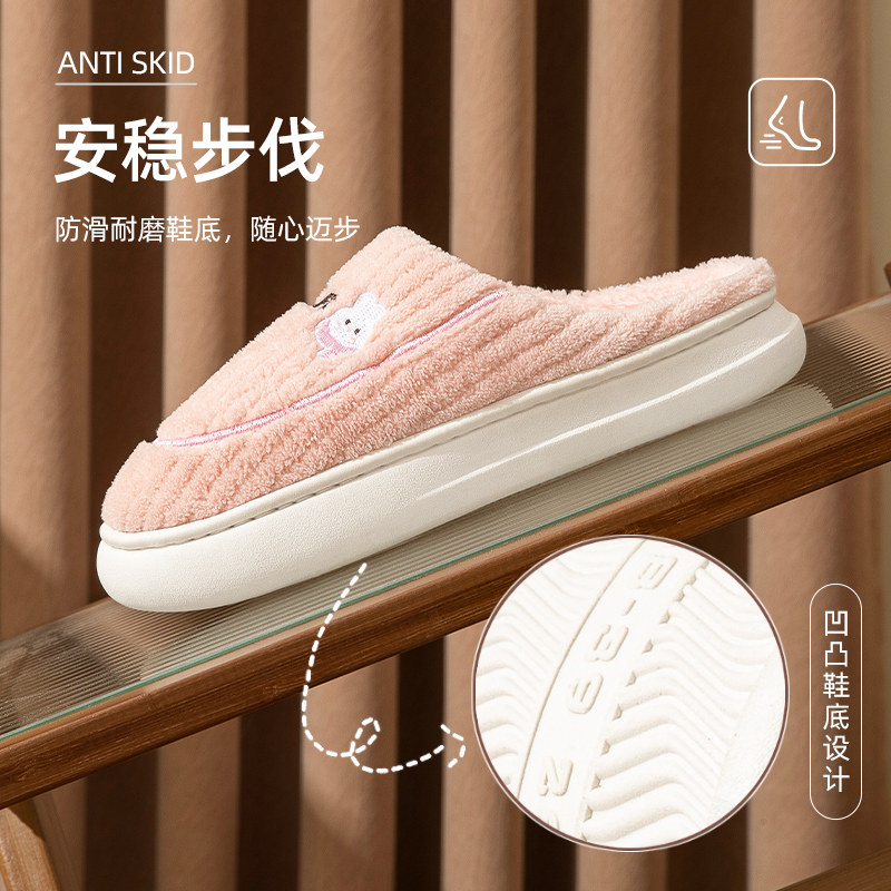 朴西棉拖鞋女士秋冬季厚底简约保暖室内居家用软底防滑情侣棉拖男