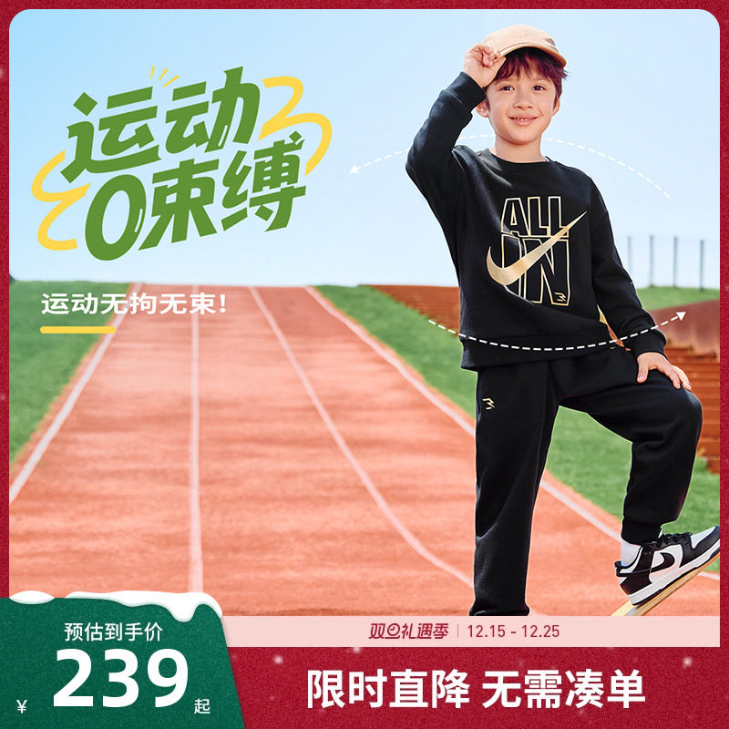 Nike 3brand童装男女童套装儿童卫衣卫裤运动2件套秋冬加绒新款潮