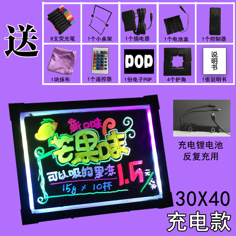 led柜台发光字挂插电小黑板七彩留言板电子荧光板30 40广告显示屏