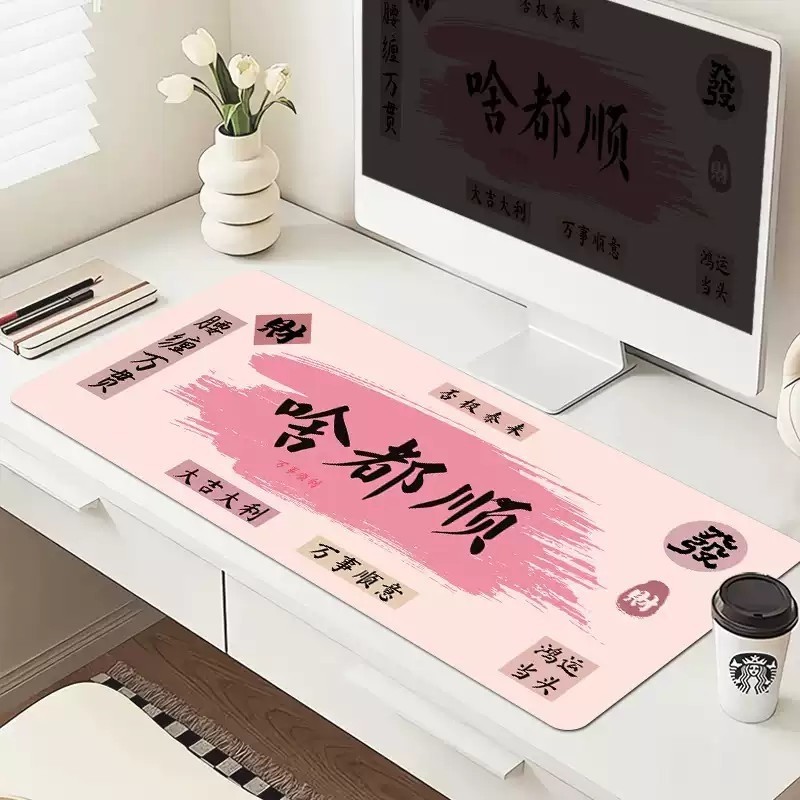 卡通文字鼠标垫超大号女生高颜值办公桌面键盘垫创意电脑桌垫