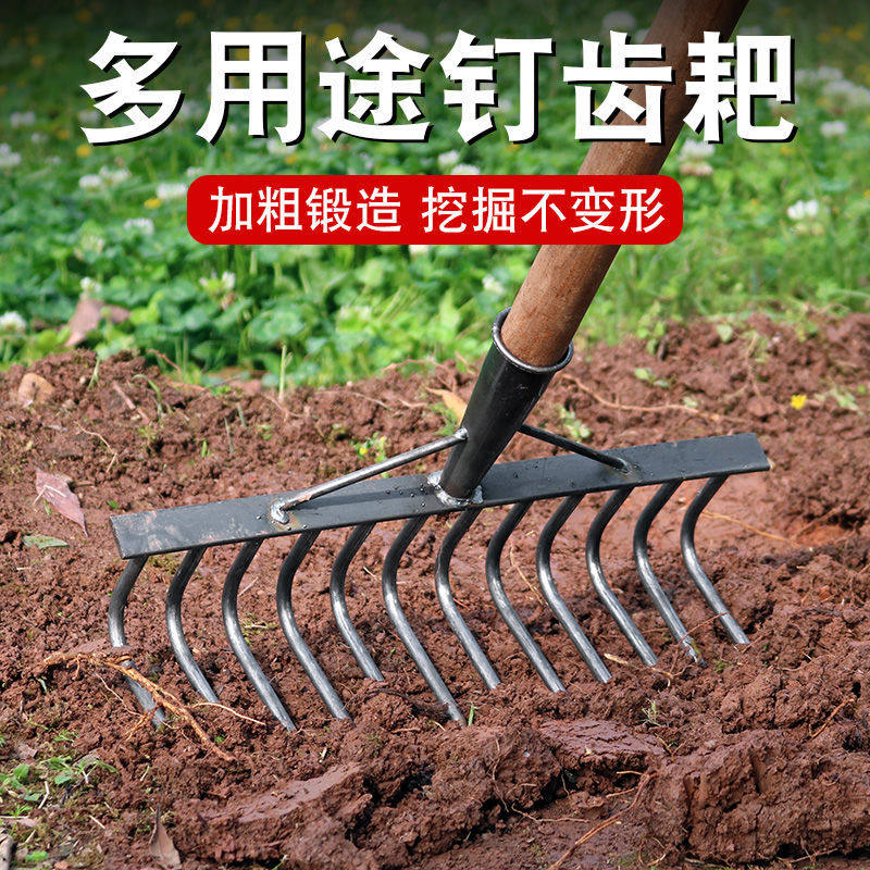 农用铁耙子平地搂草工具九齿钉耙翻地松土神器多功能刨地扒草农具