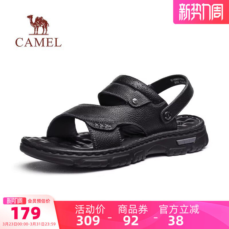 骆驼男鞋2026新款夏季软底真皮透气凉拖爸爸沙滩鞋商务男士凉鞋