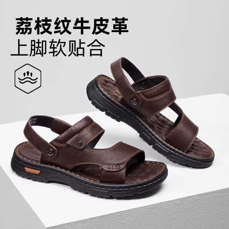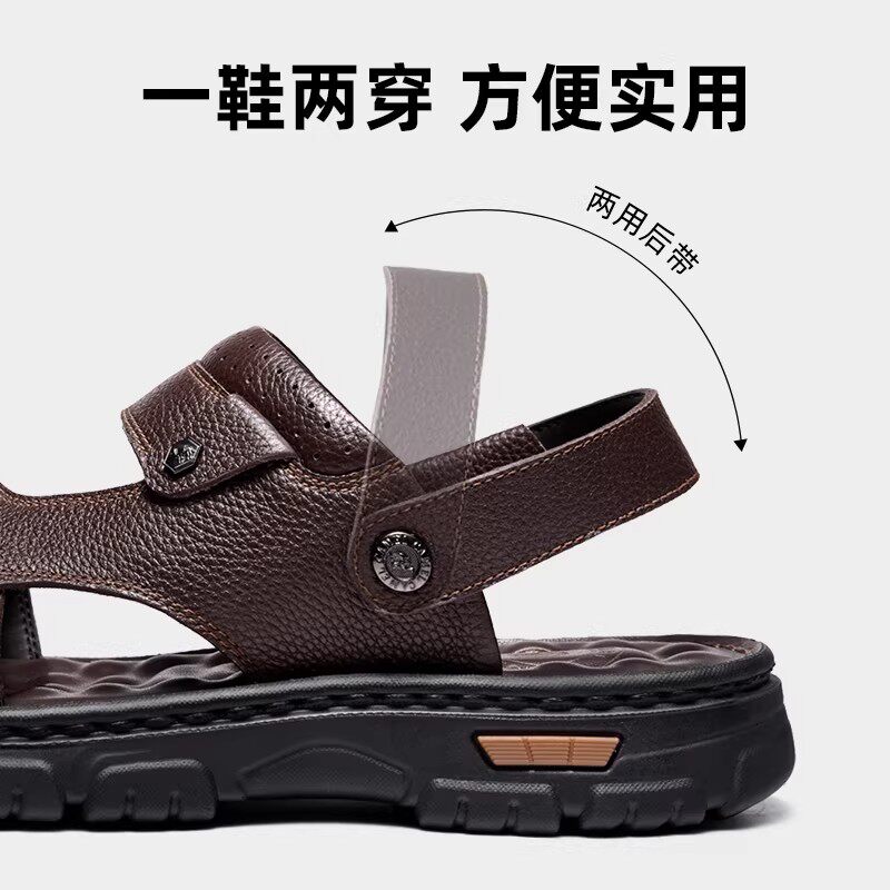 啄木鸟沙滩鞋男士头层牛皮牛筋底凉鞋真皮休闲防滑两用爸爸凉拖鞋