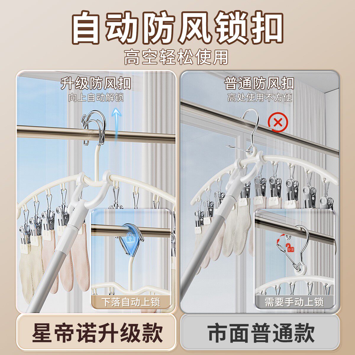 阳台防盗网晒袜子架凉内裤多夹子晾晒神器衣架防盗窗栏杆挂钩架子