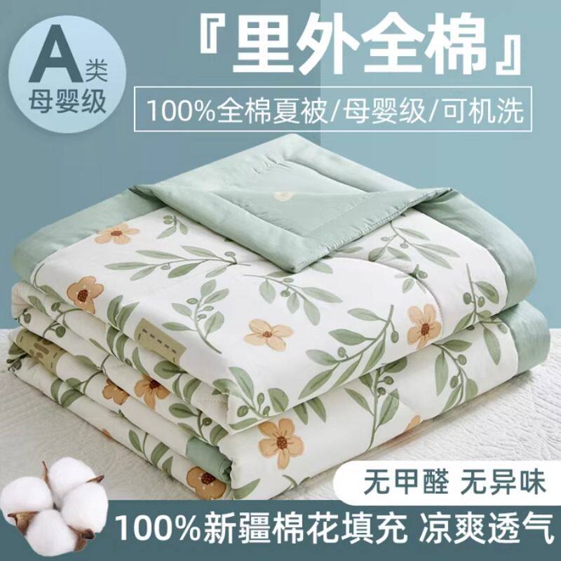 A类纯棉夏凉被里外全棉棉花夏被四件套夏季空调被芯可机洗薄被子
