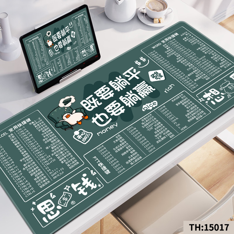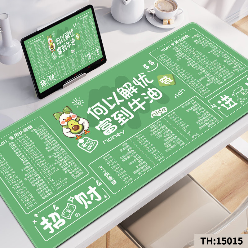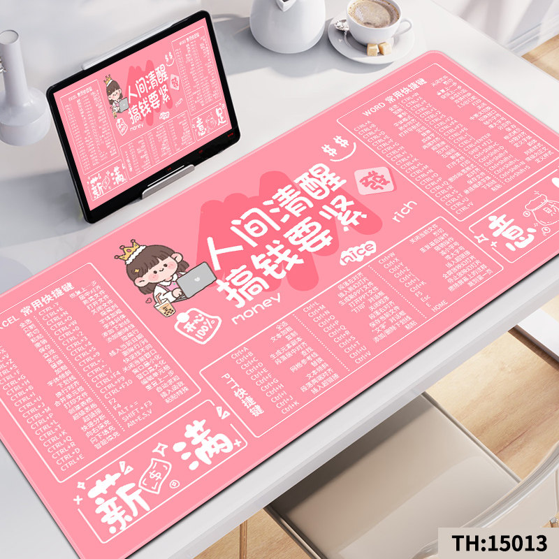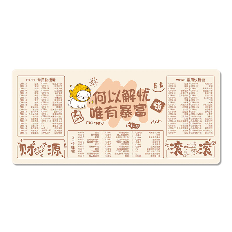 卡通发财文字鼠标垫超大高颜值快捷键男女生办公电脑键盘桌垫定制