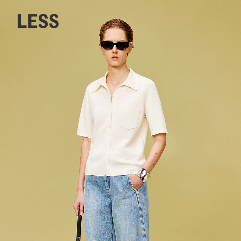 LESSpolo领短袖针织衫加厚绵羊毛休闲翻领中袖套头上衣2O4314400