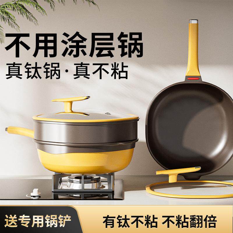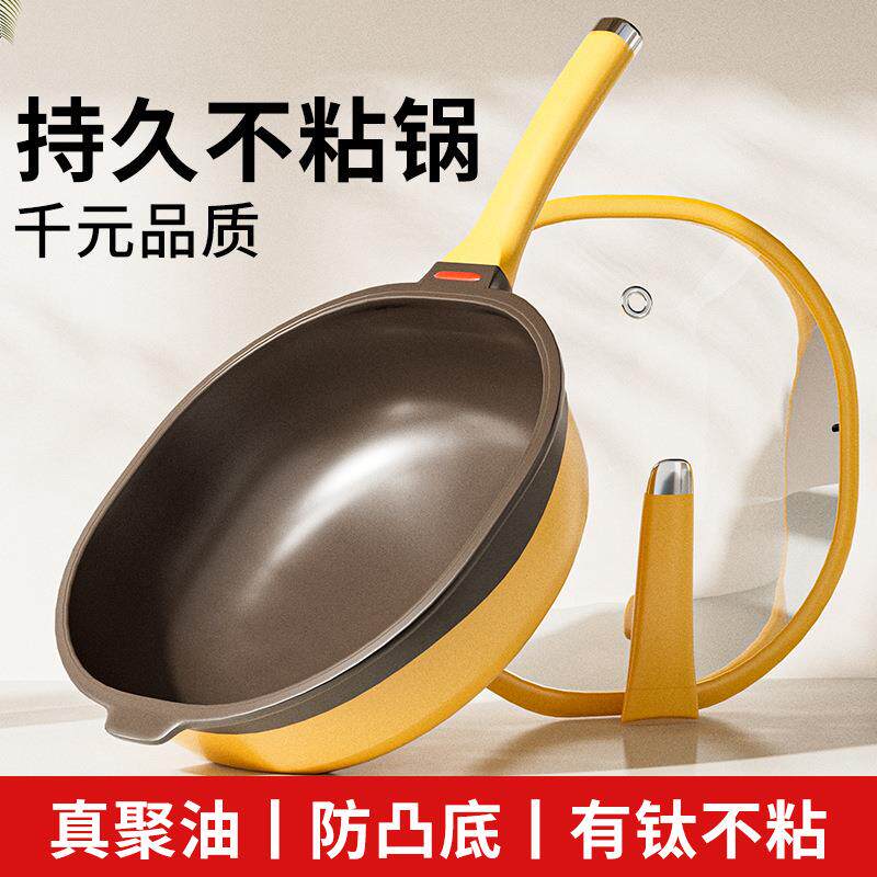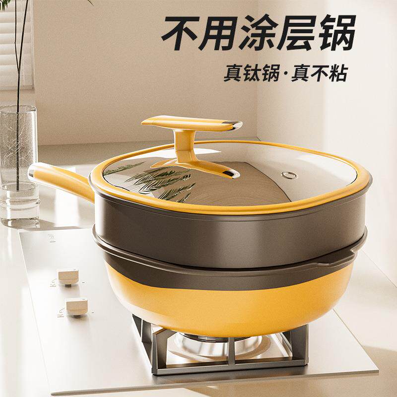 钛红芯控温平底锅不粘锅家用无涂层炒菜煎蛋牛排电磁炉专用深煎锅