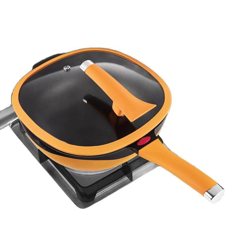 苏泊尔钛深煎锅方形双色不粘无油烟炒菜锅家用平底煎锅钛极岩铸礼