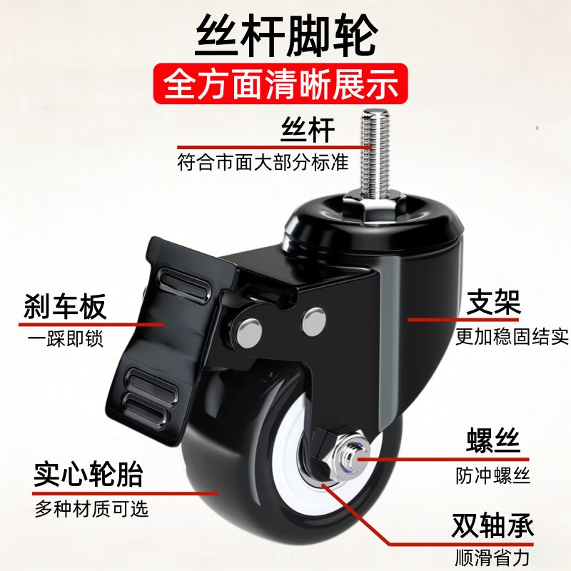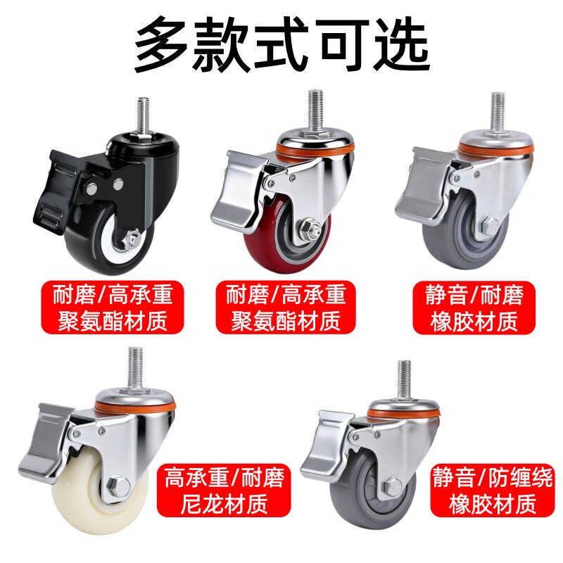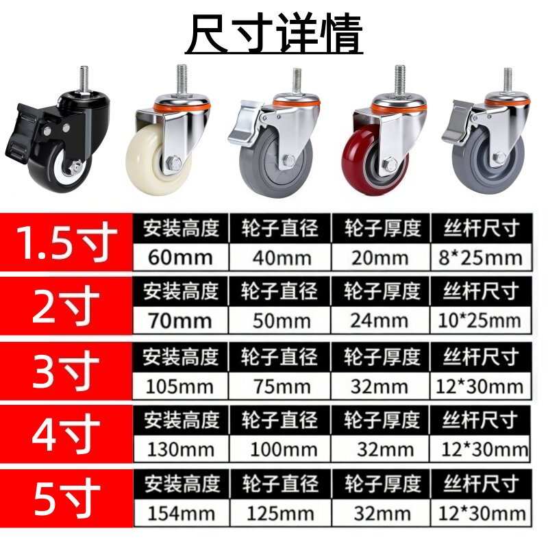 丝杆脚轮1.5寸2寸万向轮3/4/5寸静音刹车轮定向轮子家具轮箱包轮