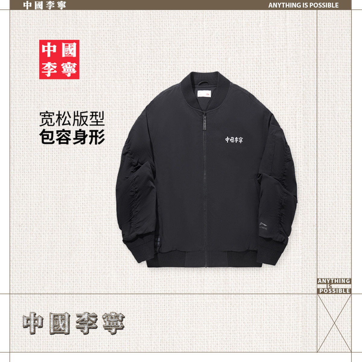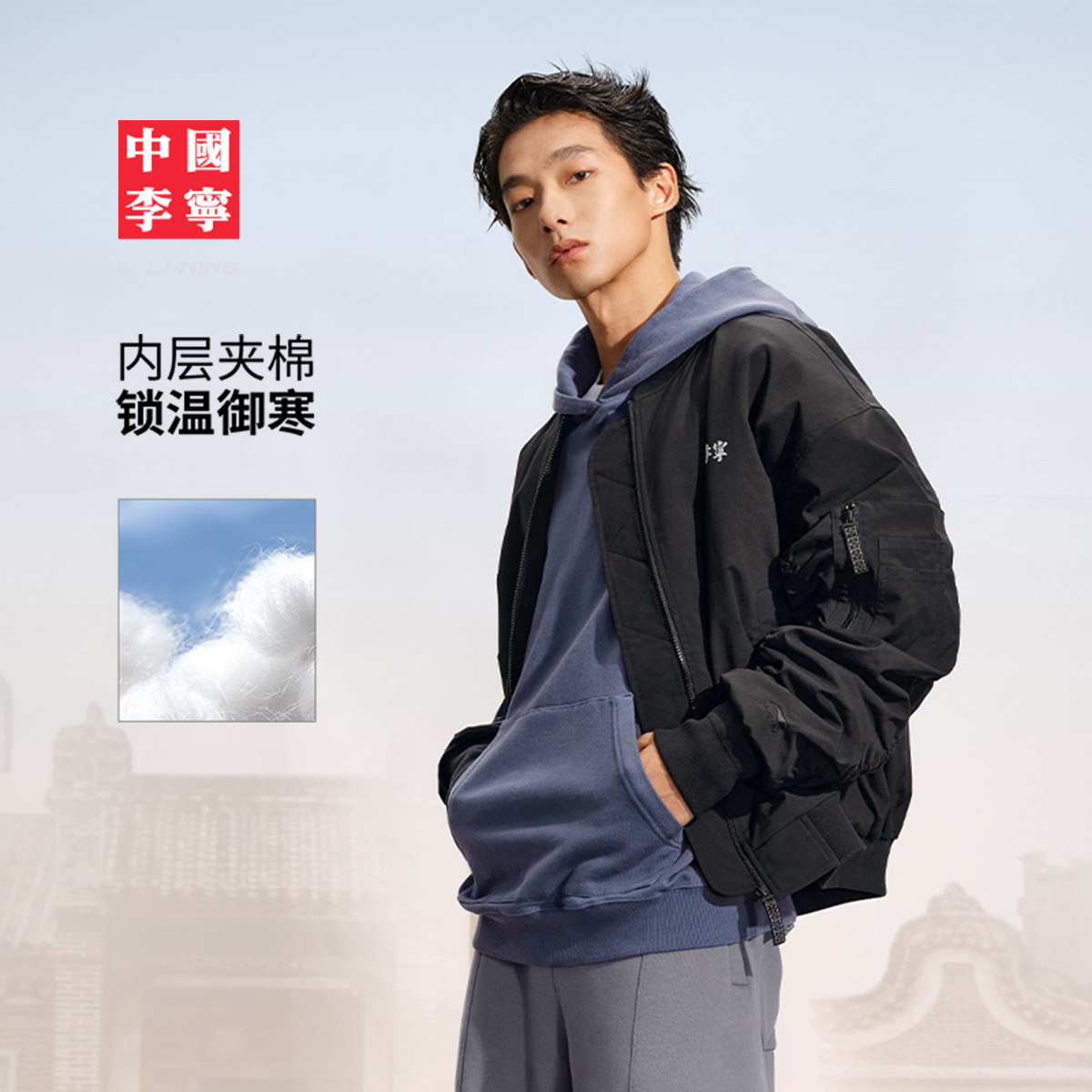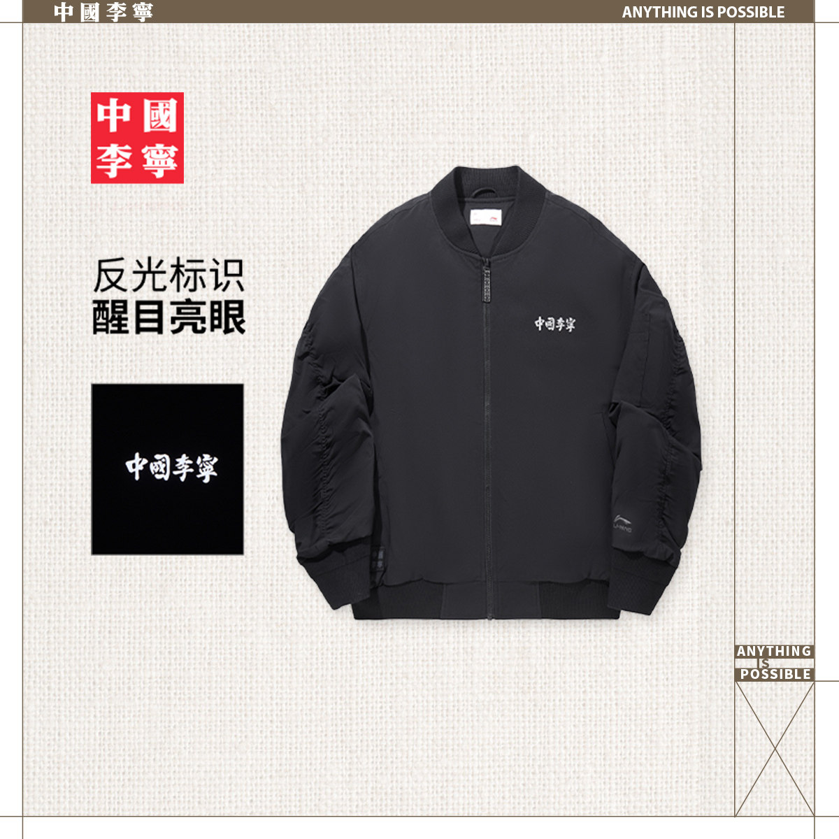 中国李宁棉服男士官方新款男装上衣冬季反光宽松运动服
