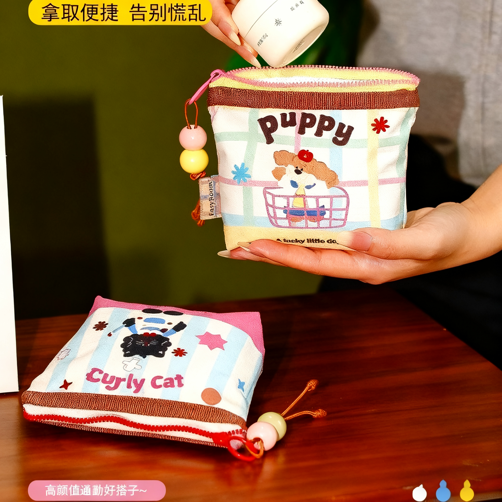 ins风卡通化妆包女大容量便携式手拿包薄款收纳袋小包零钱口红包
