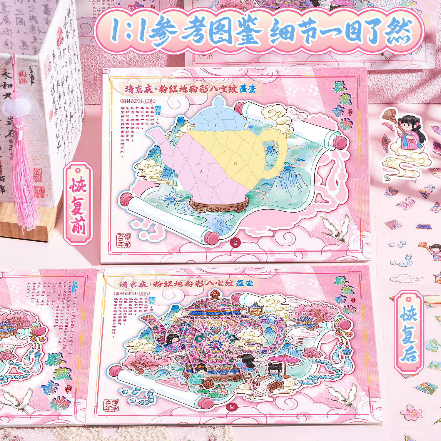 文物复原造景贴纸微缩场景合集本女孩儿童玩具场景贴纸手帐工具diy手工拼贴素材装饰小图案古董立体创意贴画