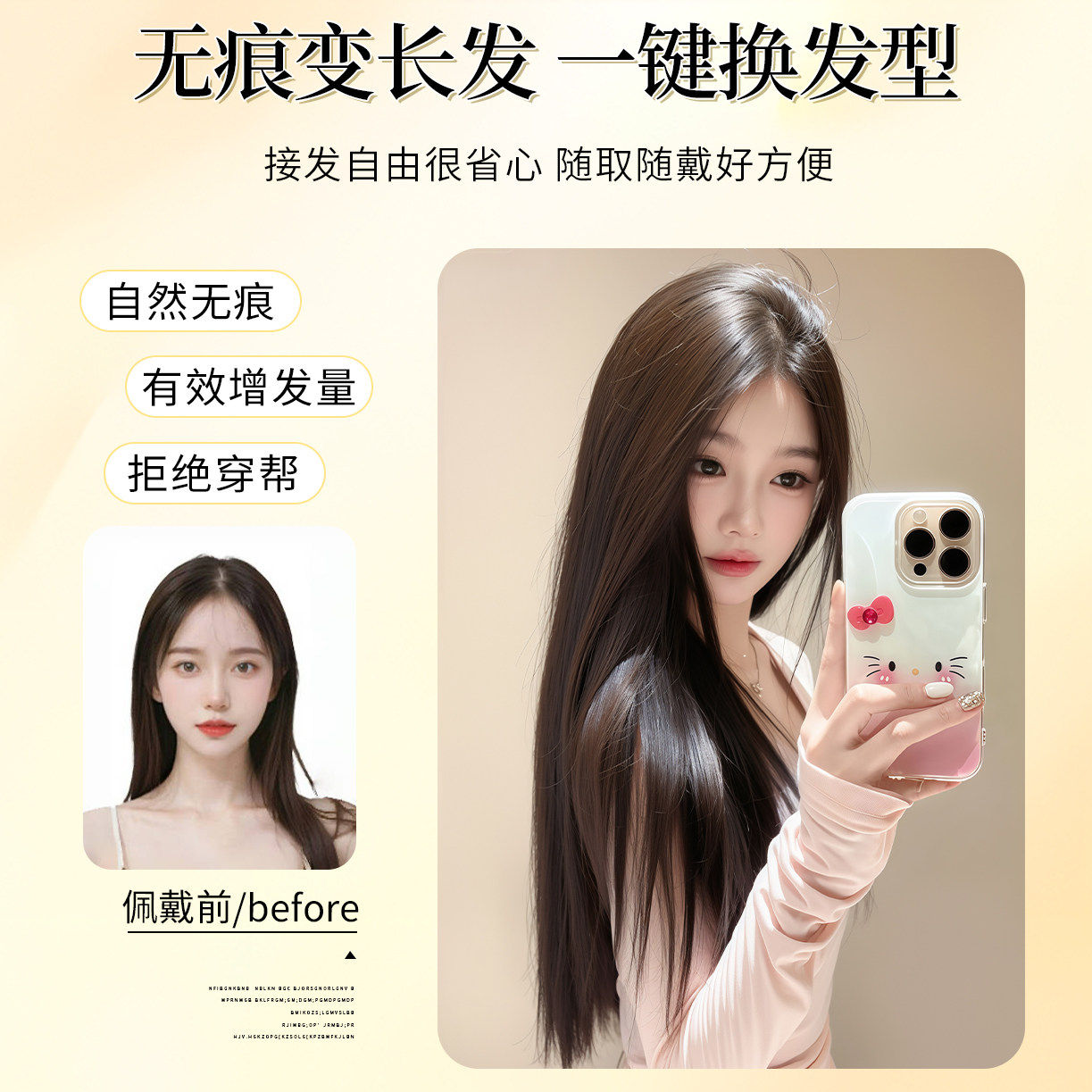 假发片女三片式仿真长直发自然蓬松增发量轻薄隐形无痕垫发接发片