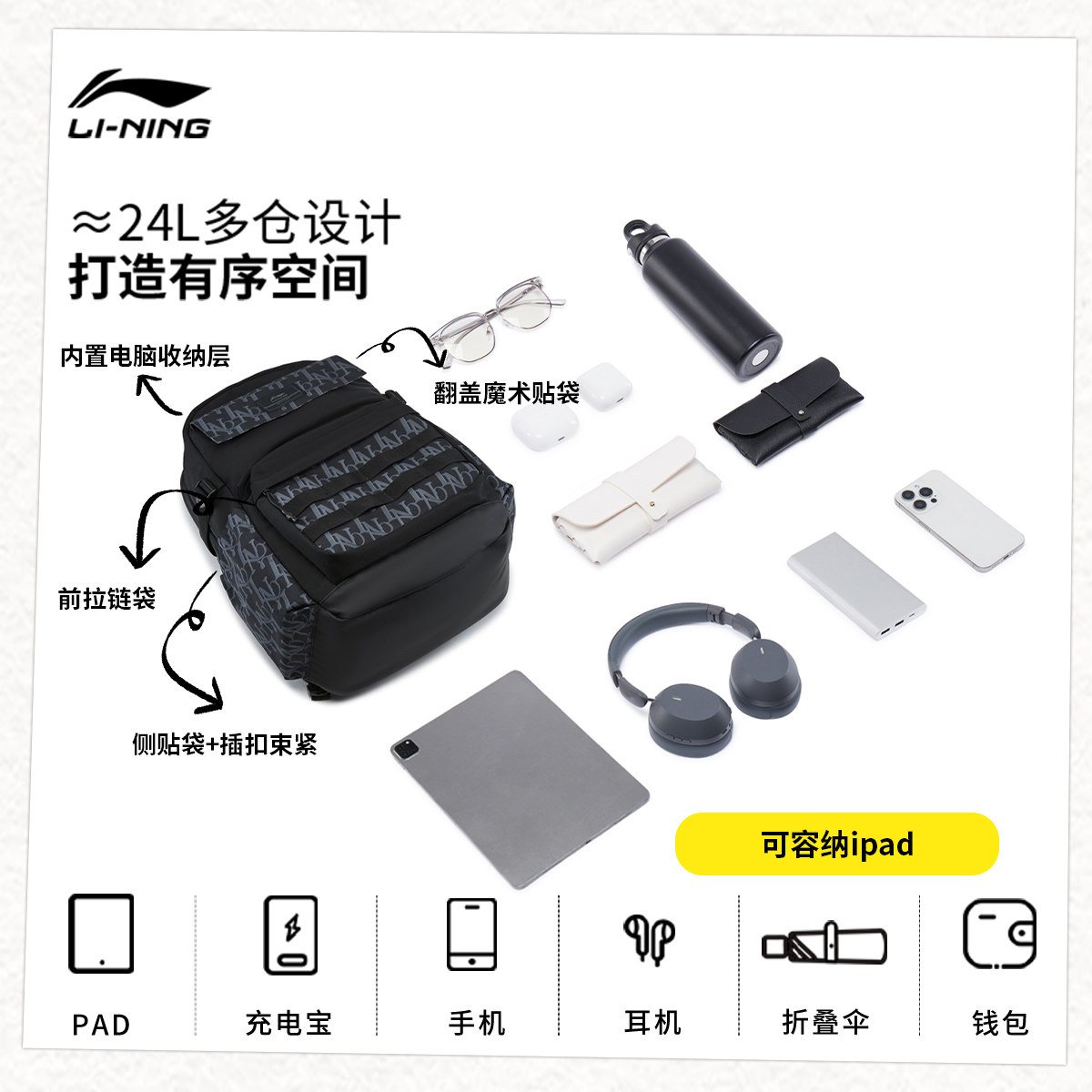 李宁双肩包男包女包 新款官方正品通勤出行背包书包学生运动包