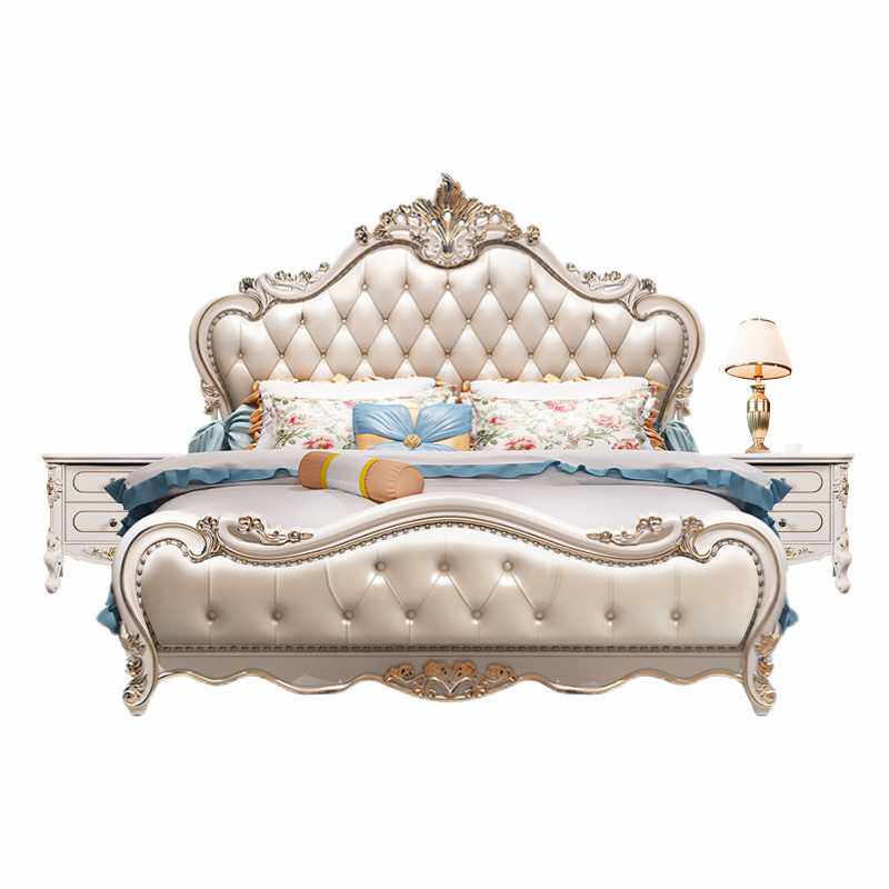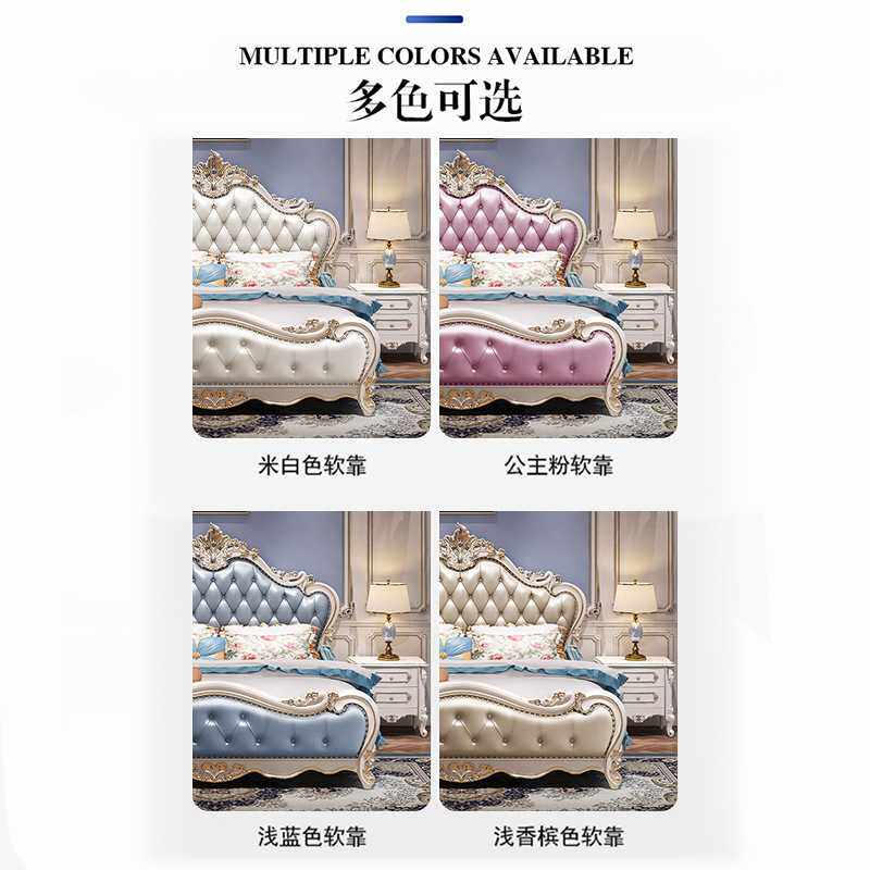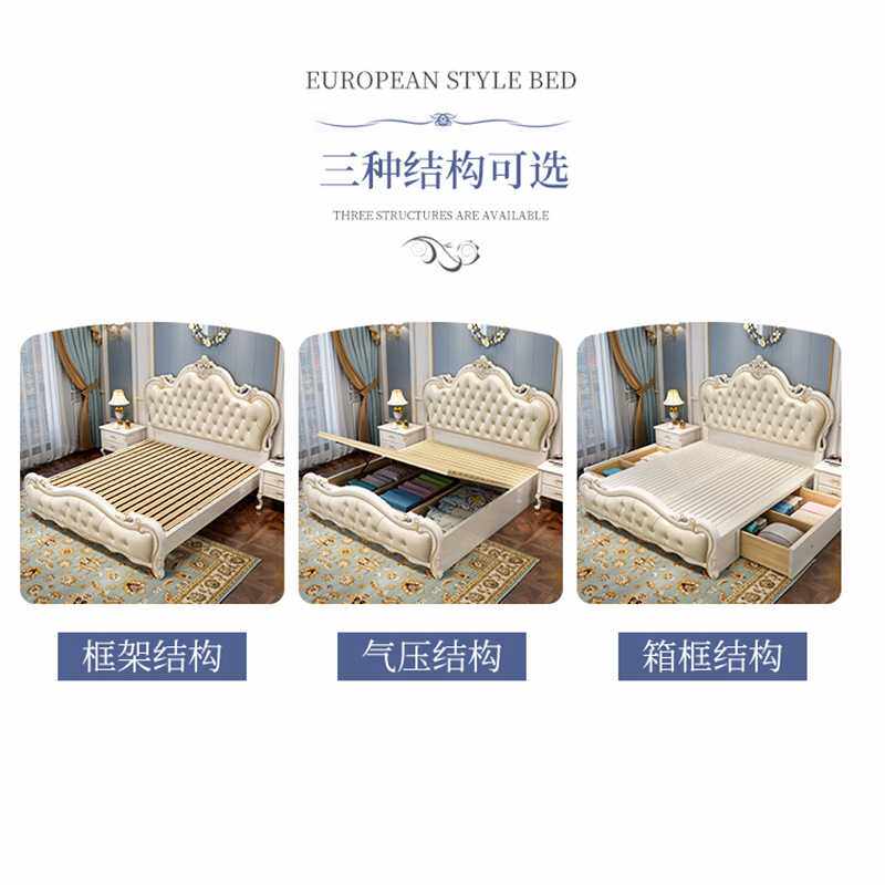 欧式皮艺床1.8m可收纳双人床婚床2024新款榻榻米实木多功能软包床