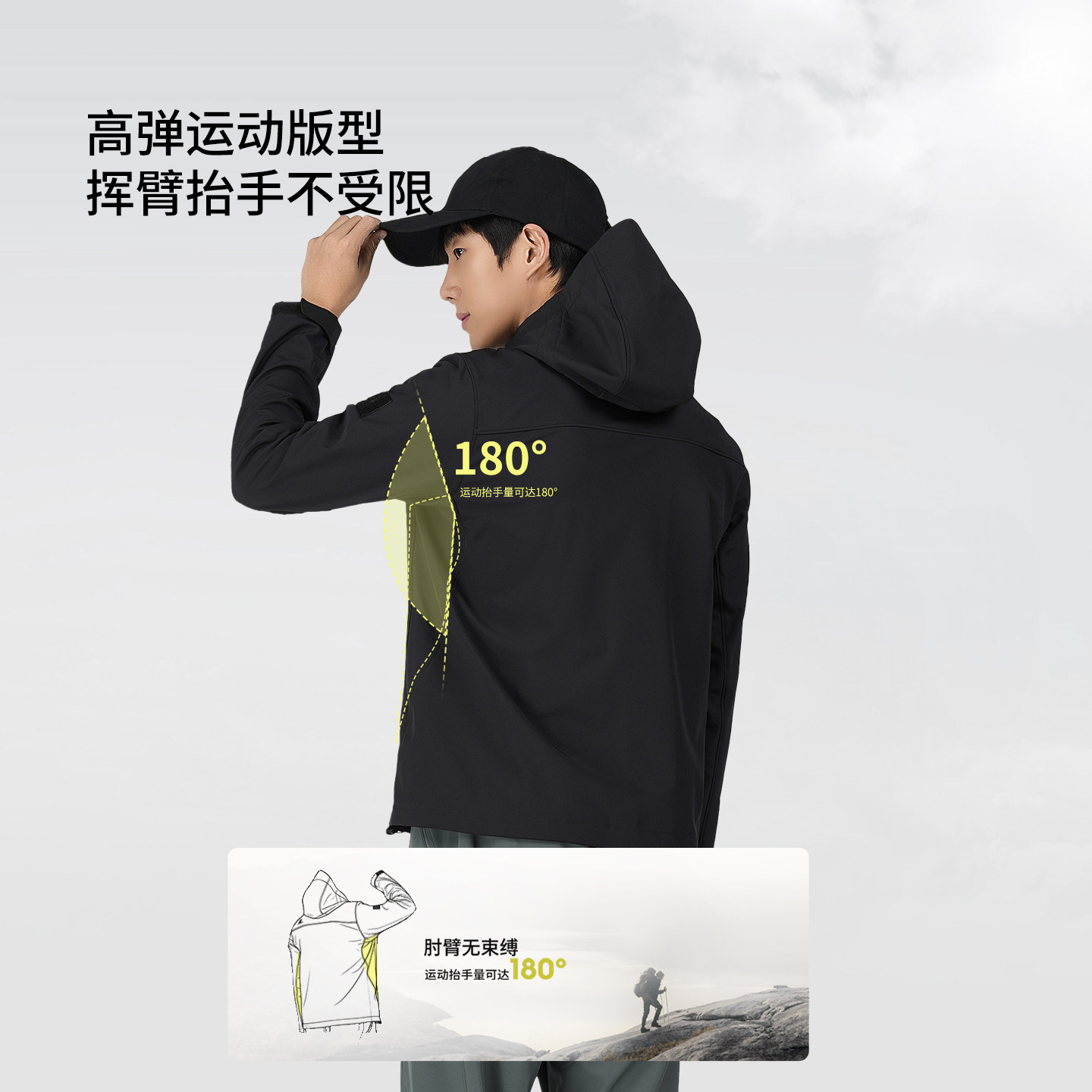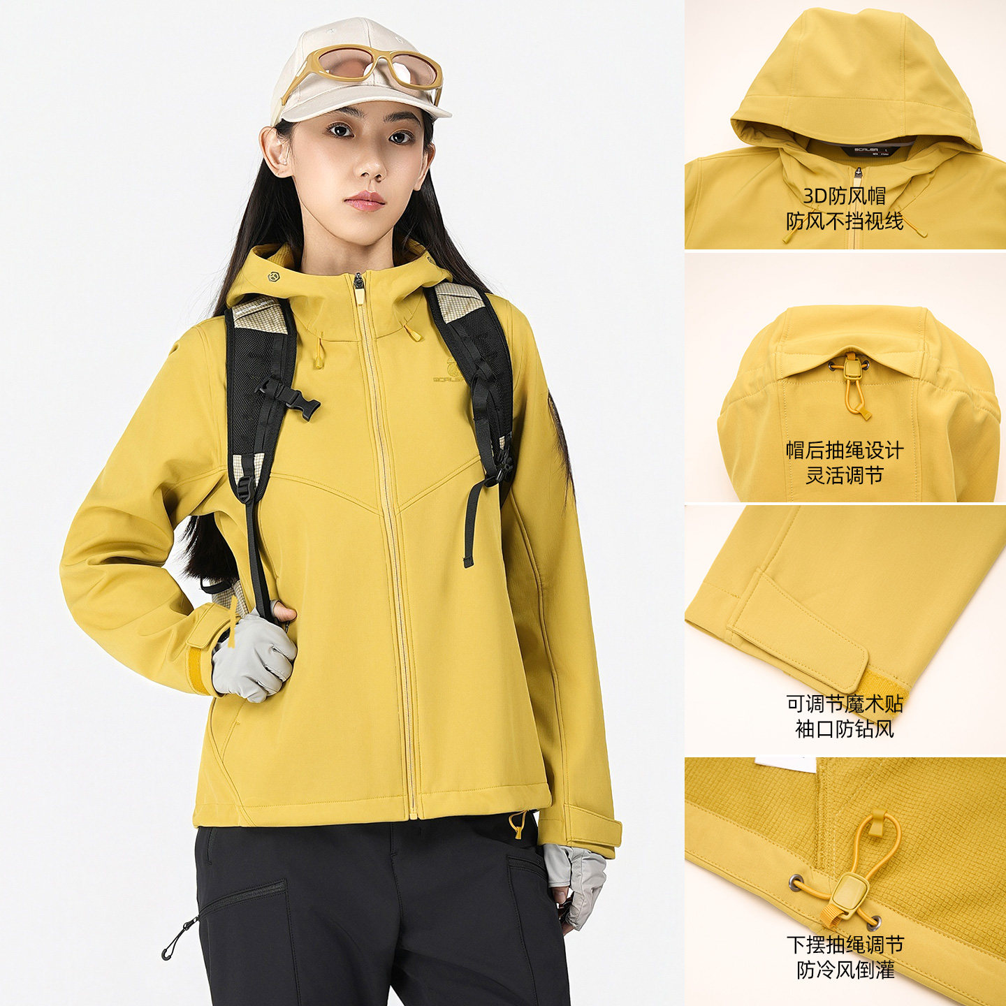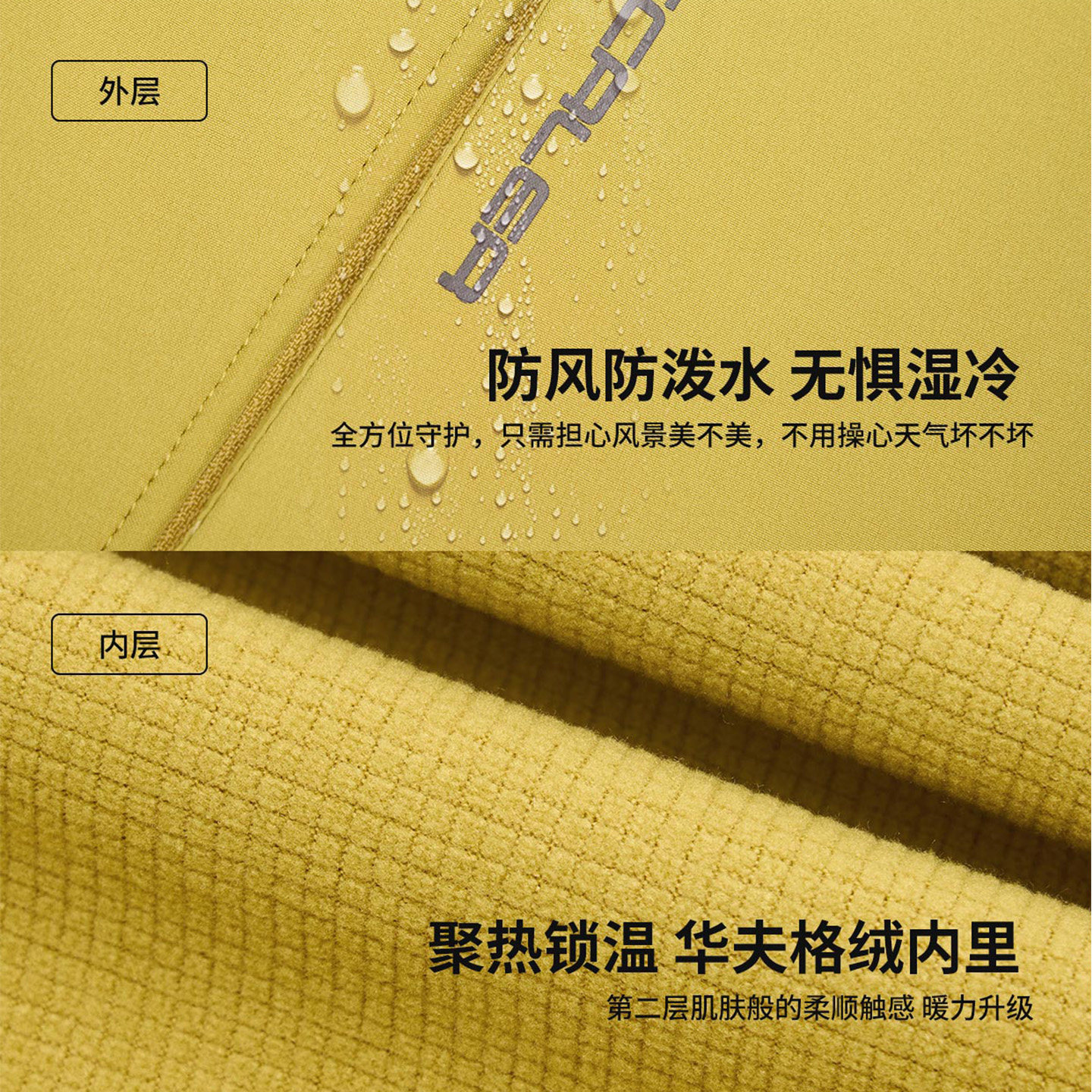 骆驼户外软壳衣外套男春季防风防泼水薄绒运动夹克连帽登山服女