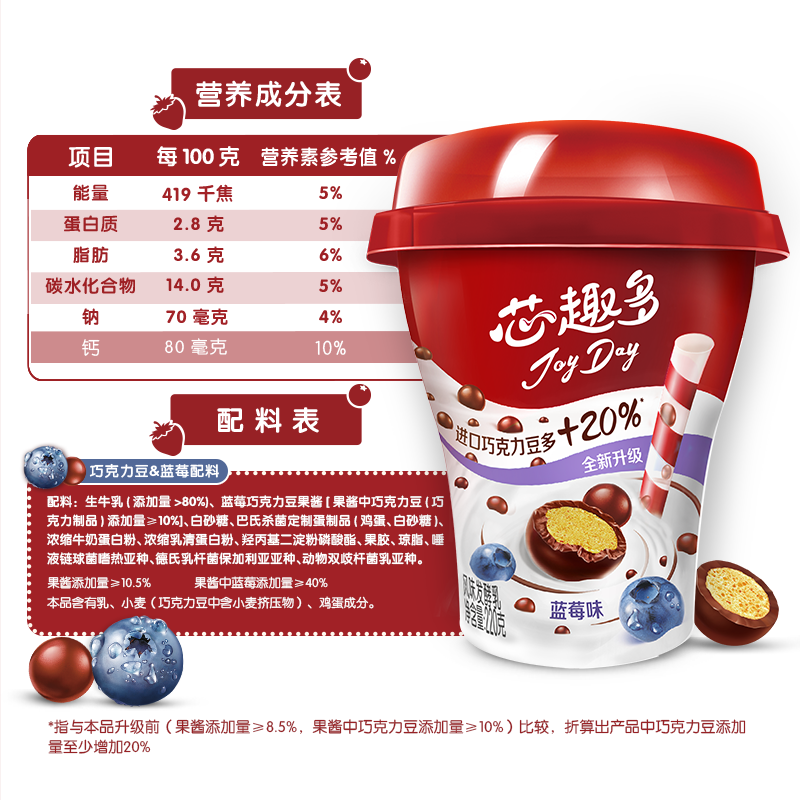 伊利巧克力豆酸奶220g*6杯芯趣多JoyDay草莓风味发酵乳蓝莓滋味