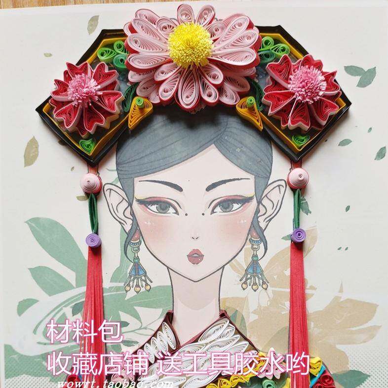 衍纸少数民族服饰折纸手工纸学生手工作业中国风线稿材料包套装