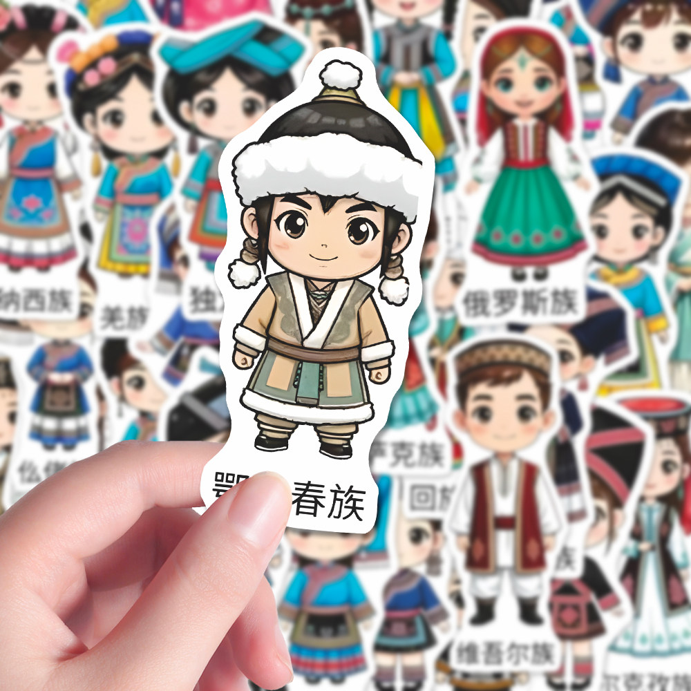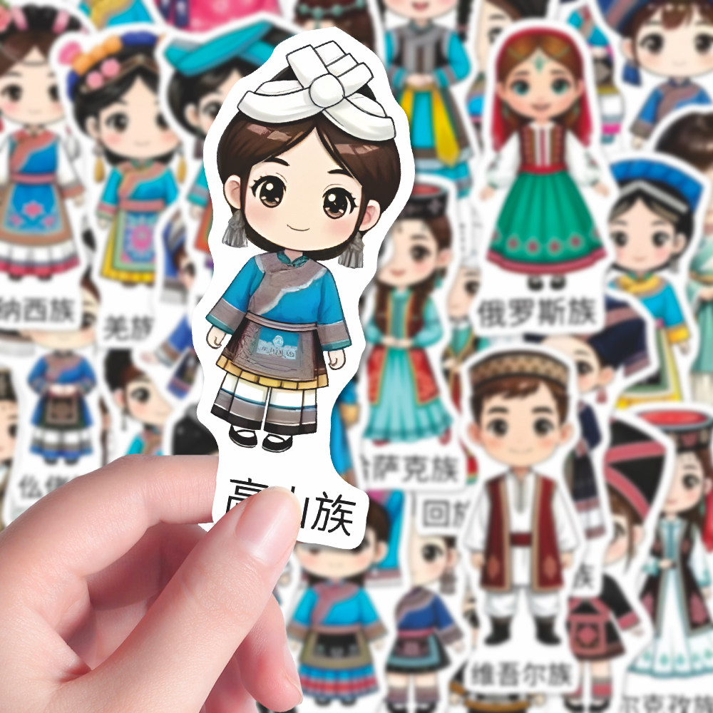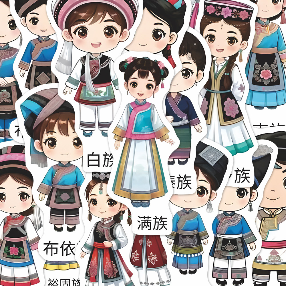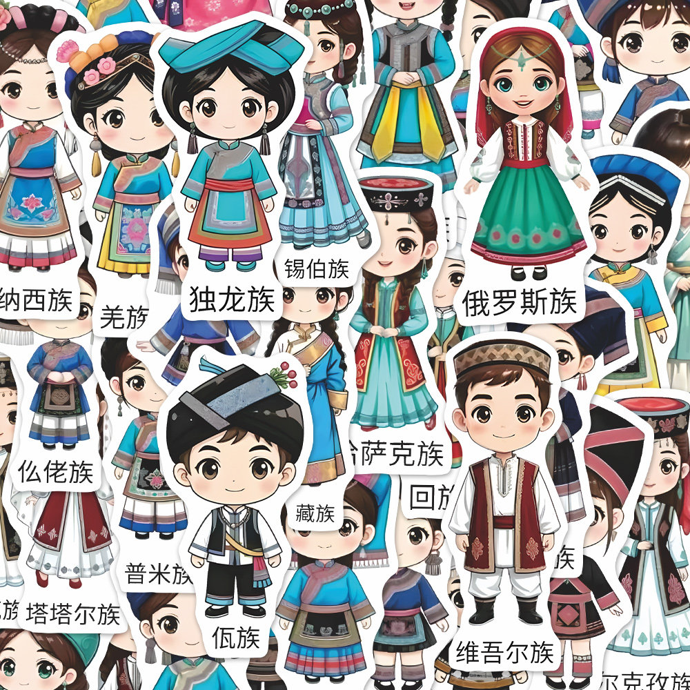 168张56个民族传统服饰鉴别贴纸】中华民族文化服饰图鉴大全贴纸