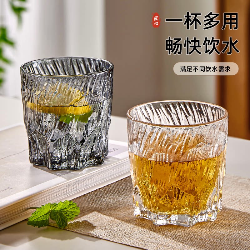 冰川纹玻璃杯子水杯女夏季啤酒杯家用牛奶茶杯男ins风饮料咖啡杯