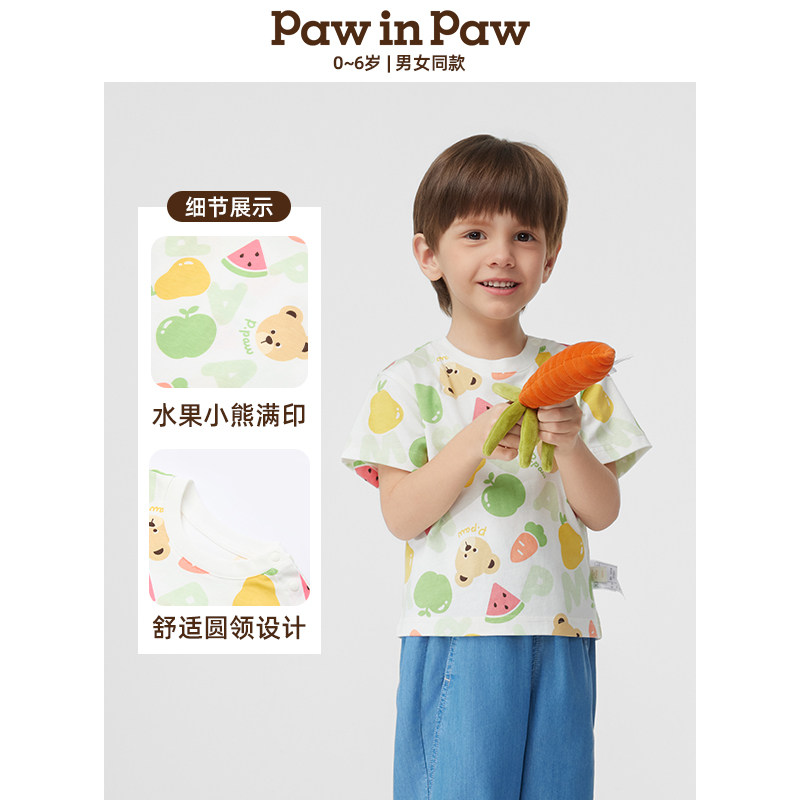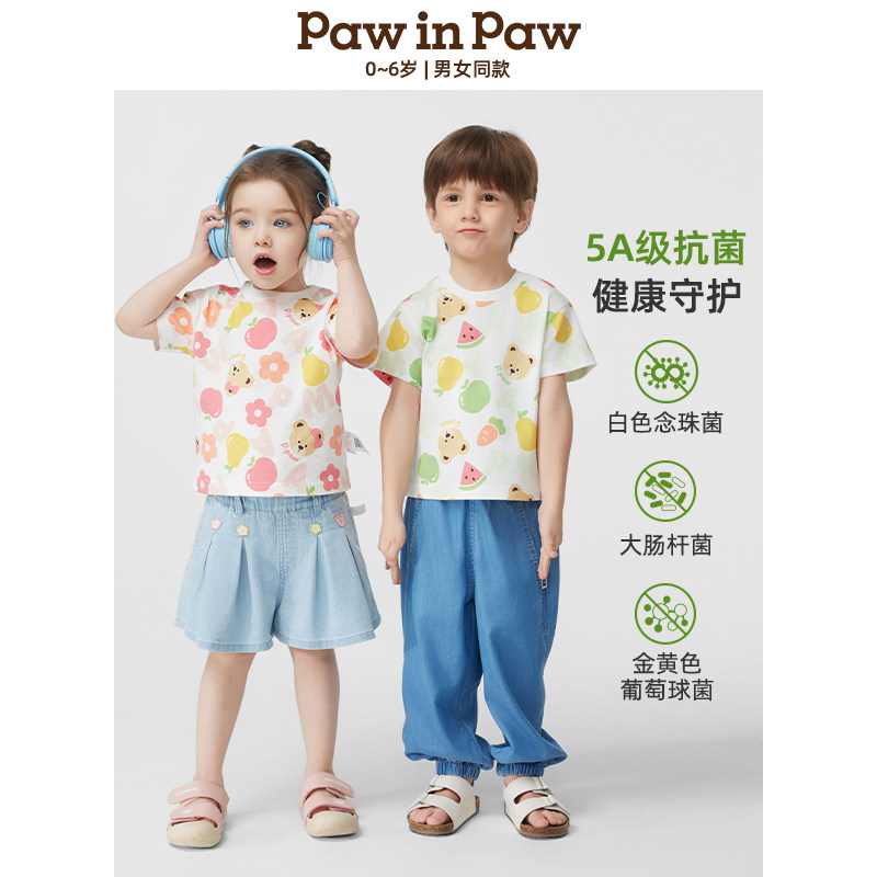 【熊宝棉5A抗菌】PawinPaw卡通小熊童装夏男女宝宝短袖T恤